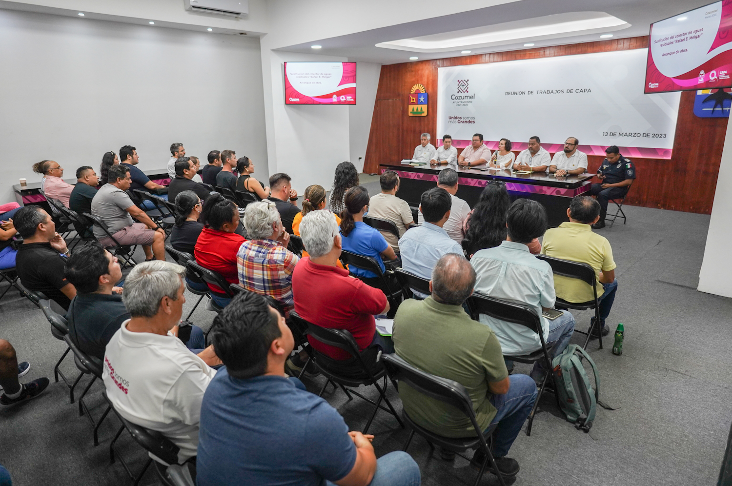 La presidenta municipal, Juanita Alonso Marrufo anunció ante empresarios locales que, con apoyo de la gobernadora del estado, Mara Lezama Espinosa, este miércoles 15 de marzo iniciará la importante obra de “Sustitución del colector de aguas residuales sobre la avenida Rafael E. Melgar”, sistema que actualmente se encuentra gravemente deteriorado, dando solución a este problema que por años ha tenido el primer cuadro de la Isla.