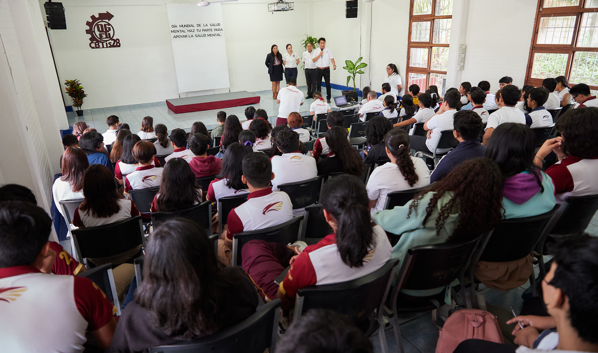 En el marco del Día Mundial de la Salud Mental, el Gobierno Municipal llevó a los alumnos del Centro de Bachillerato Tecnológico Industrial y de Servicios (CBTIS No. 28) la plática informativa “Nuestro planeta, nuestra salud” la cual forma parte de la Jornada Nacional de la Salud Pública que se realiza del 10 al 21 de octubre.
