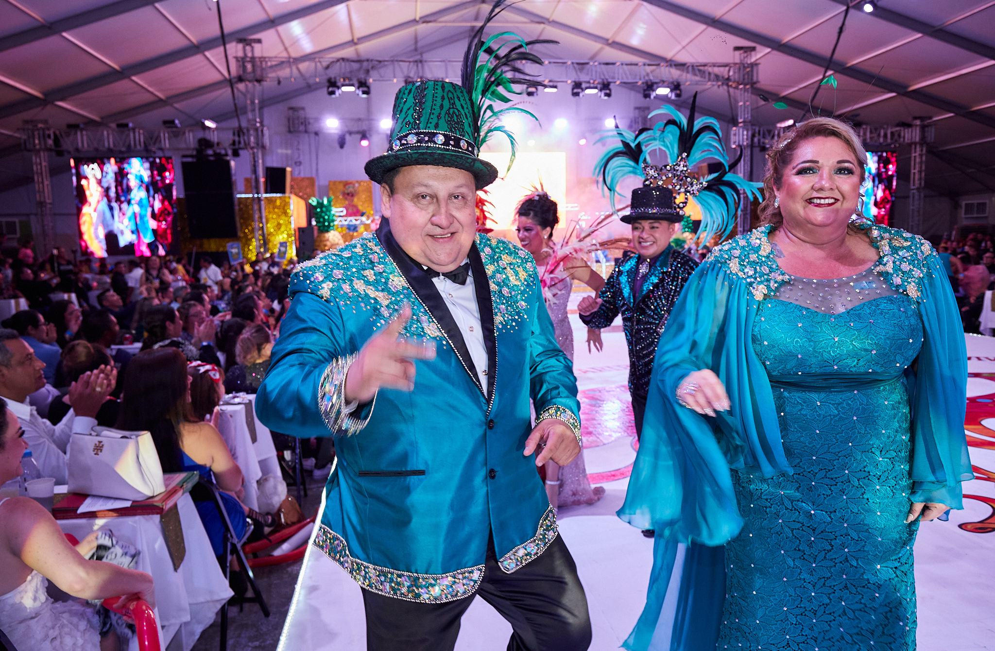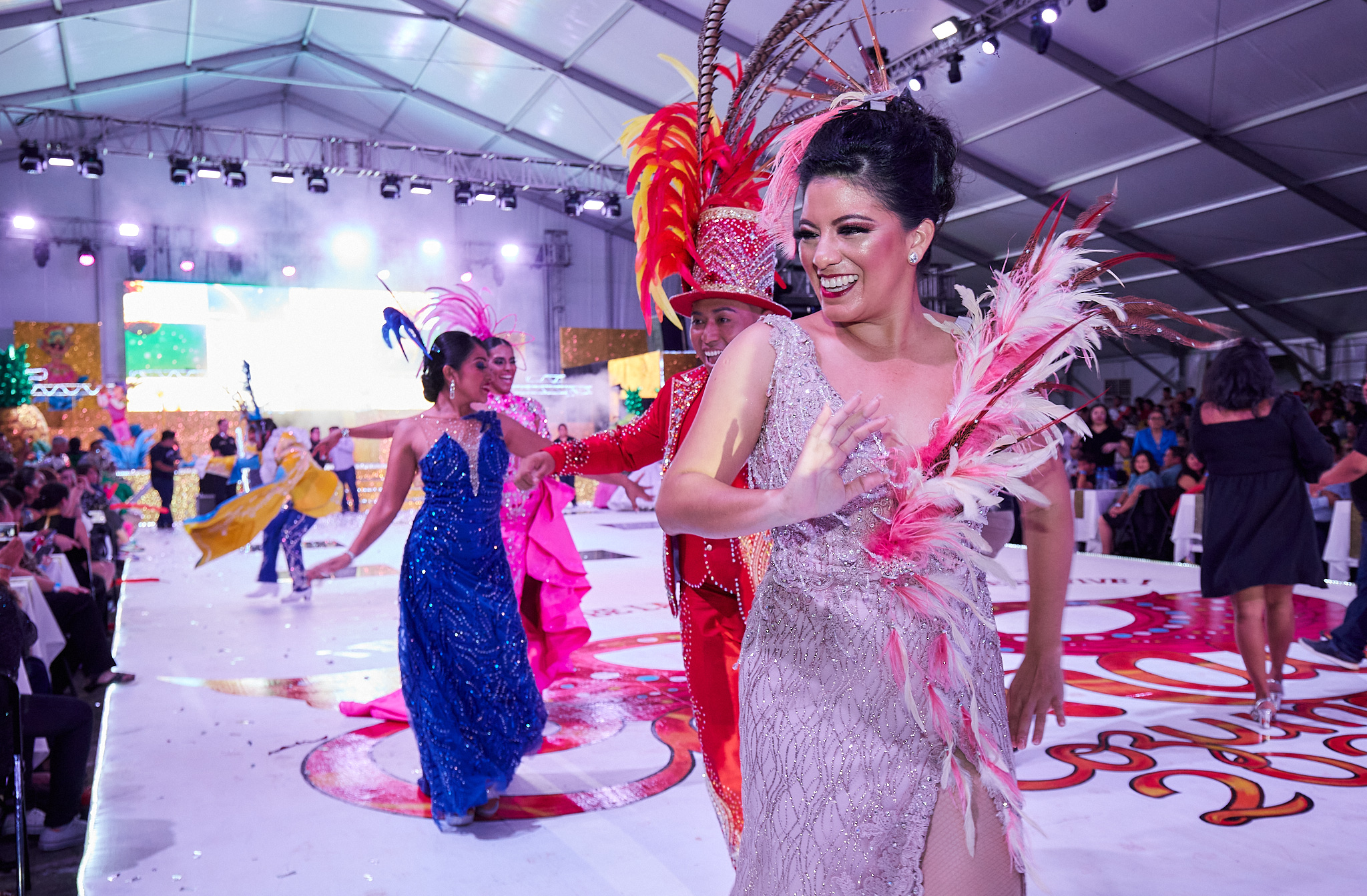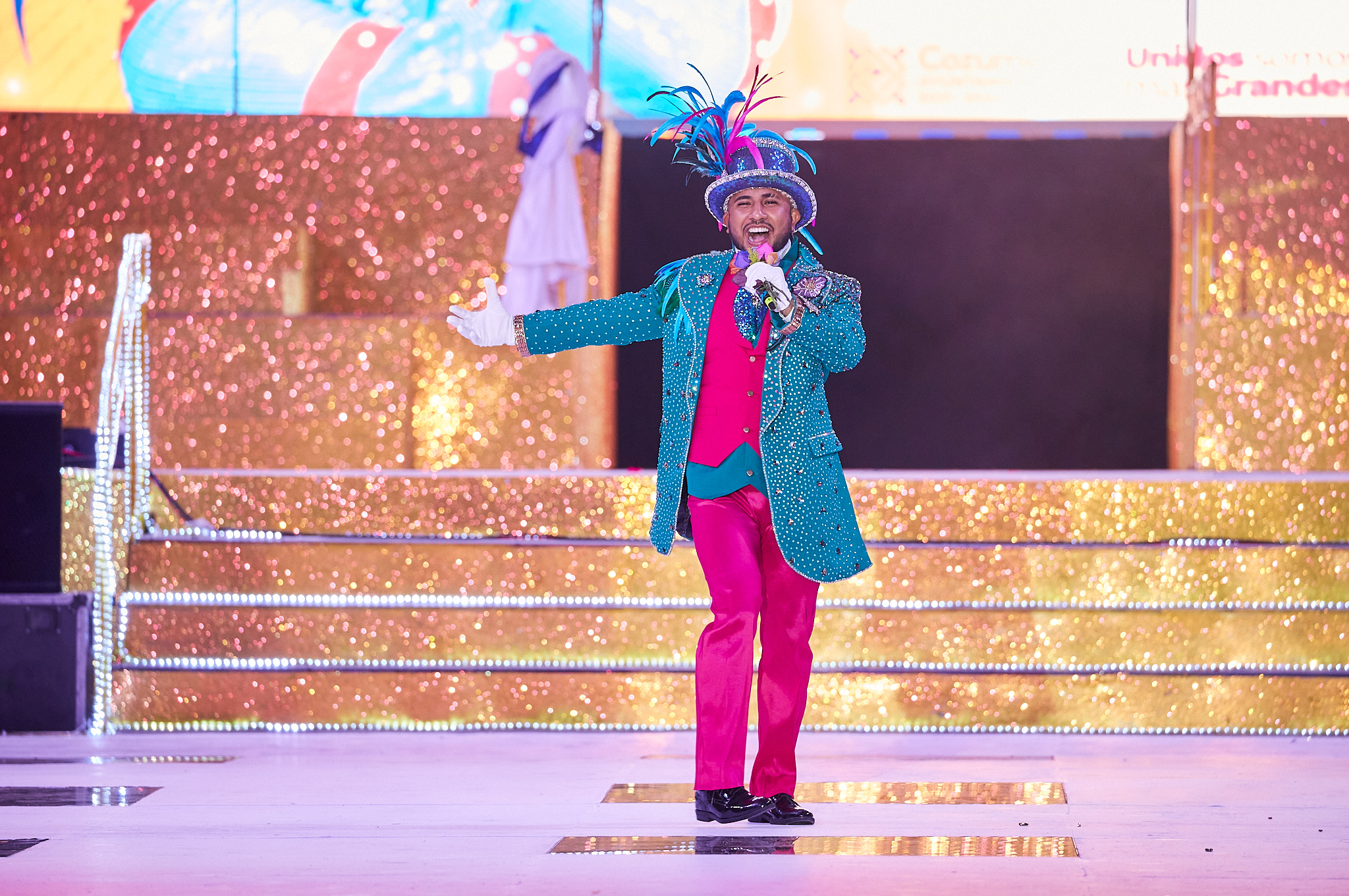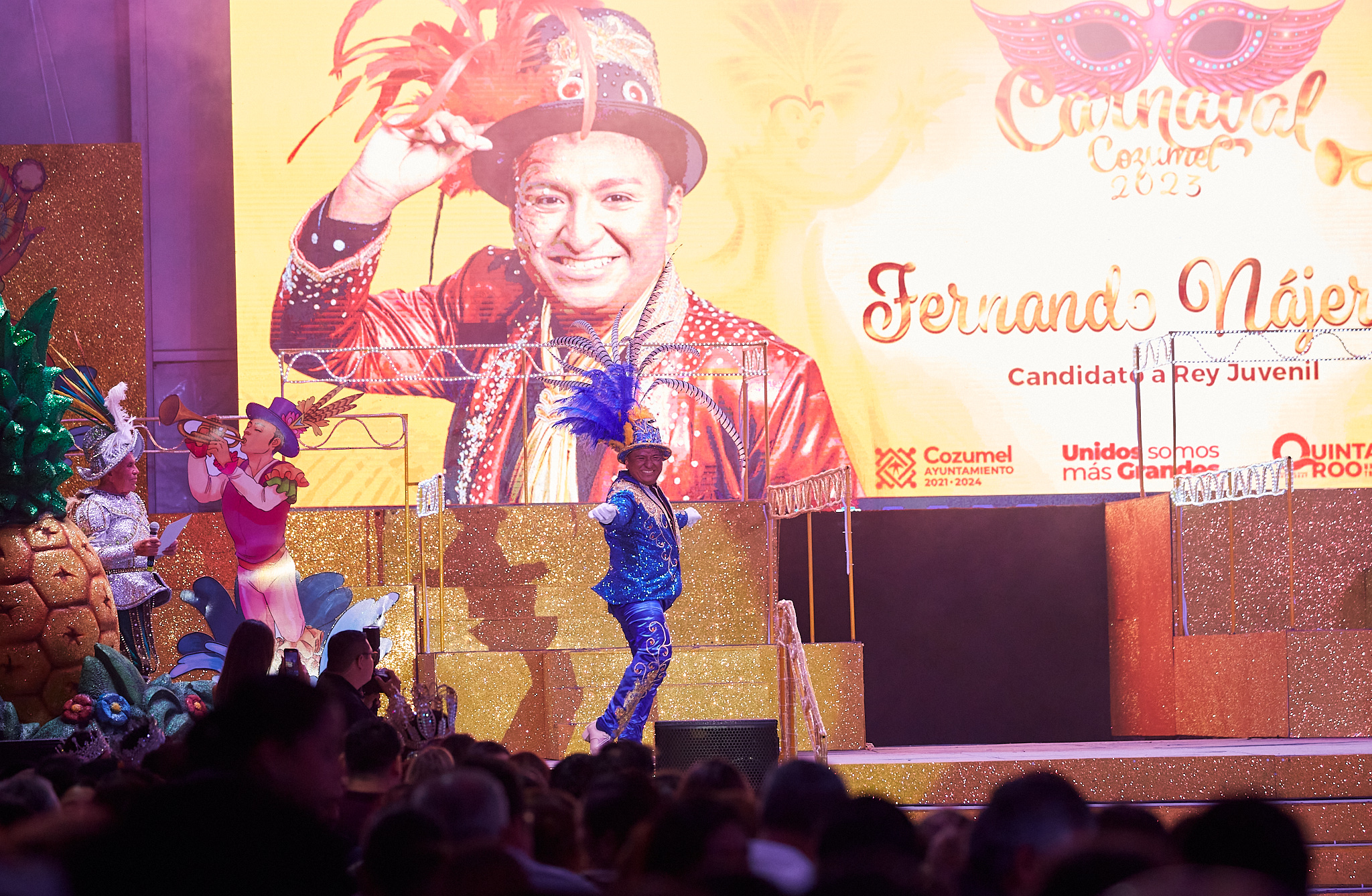 Porque “En el Caribe la tradición siempre se vive” previo al anunció, la noche de fiesta abrió con el ballet oficial con el baile “El reino de la piña” y el tema oficial del Carnaval 2023 en tanto que el “Señor espectáculo” Fernando Ferráez fue el encargado de conducir el evento de esta noche en los que estuvieron presentes los reyes de las diversas categorías del 2022, encabezados por los máximos monarcas Ana Pao Rivero y Joseph Alonzo.