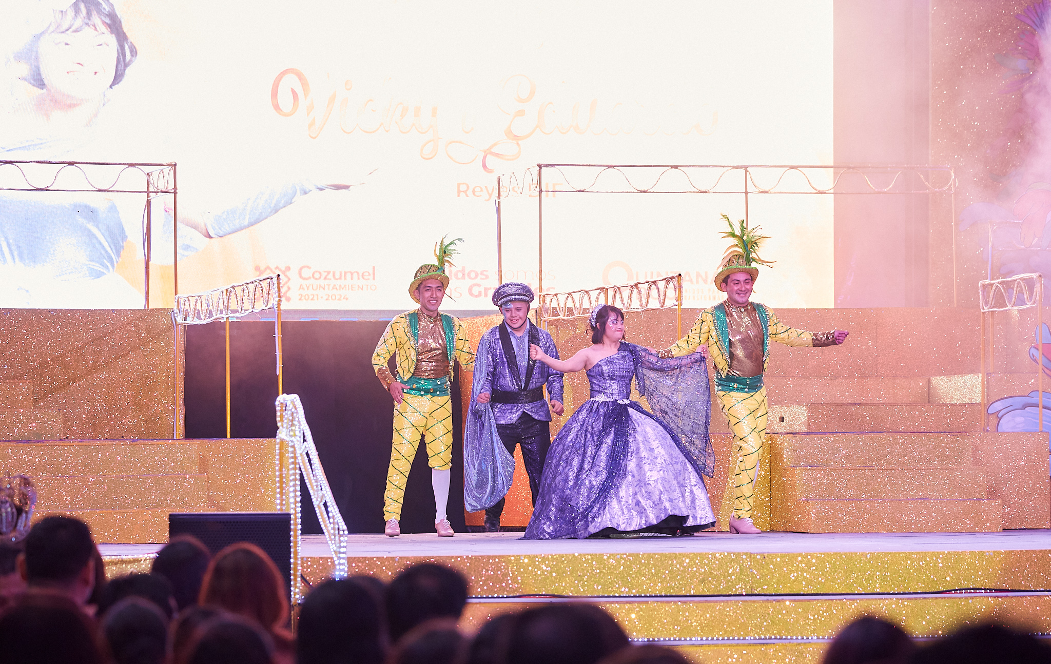 Posteriormente fueron presentados los candidatos, previo al sorteo de su aparición, siendo el primero, el Rey infantil electo, Abdiel Pomol, seguido de las candidatas a reinas categoría infantil, Sherlin Pech y Leilani Aburto; en la categoría Juvenil la Reina electa Juliette Bacelis, así como los aspirantes a la corona, Fernando Najera y Alfredo Chalé, además de los Reyes DIF Vicky y Eduardo.
