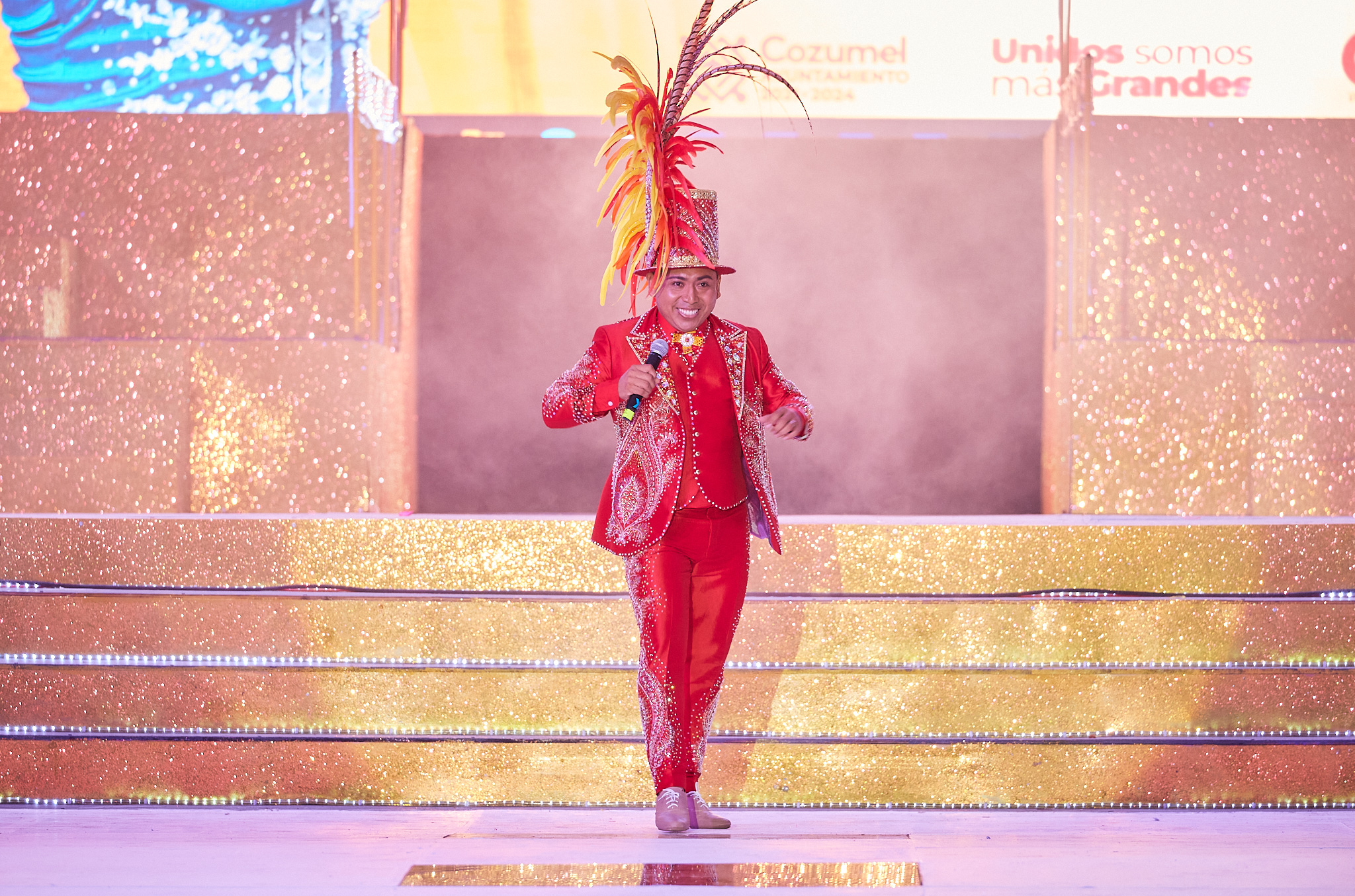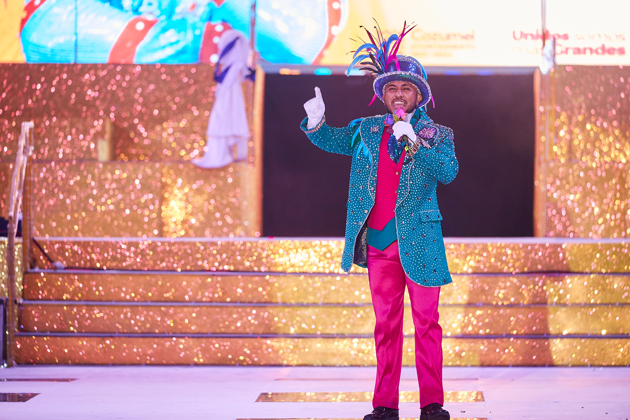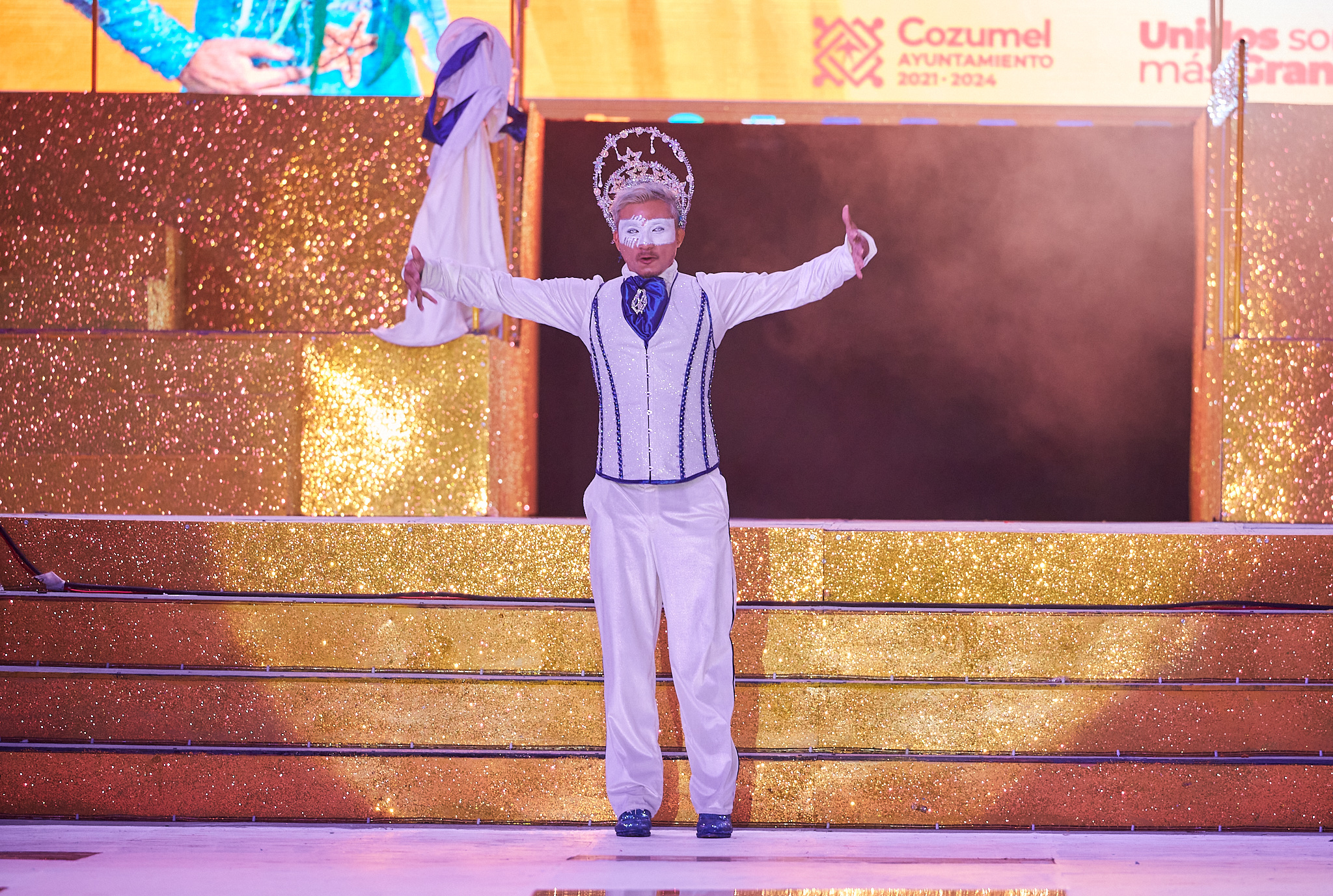 Tras la vueltecita carnavalera por la pista del Palacio del Carnaval y la foto del recuerdo que enmarca el arranque oficial de esta festividad, hizo su aparición en el escenario el autor del tema oficial del Carnaval Cozumel 2023, Pilo Tejeda y su Banda Blanca, que puso a bailar al público asistente al ritmo de punta con sus grandes éxitos y algunos covers, siendo la más coreada “Sopa de caracol”.