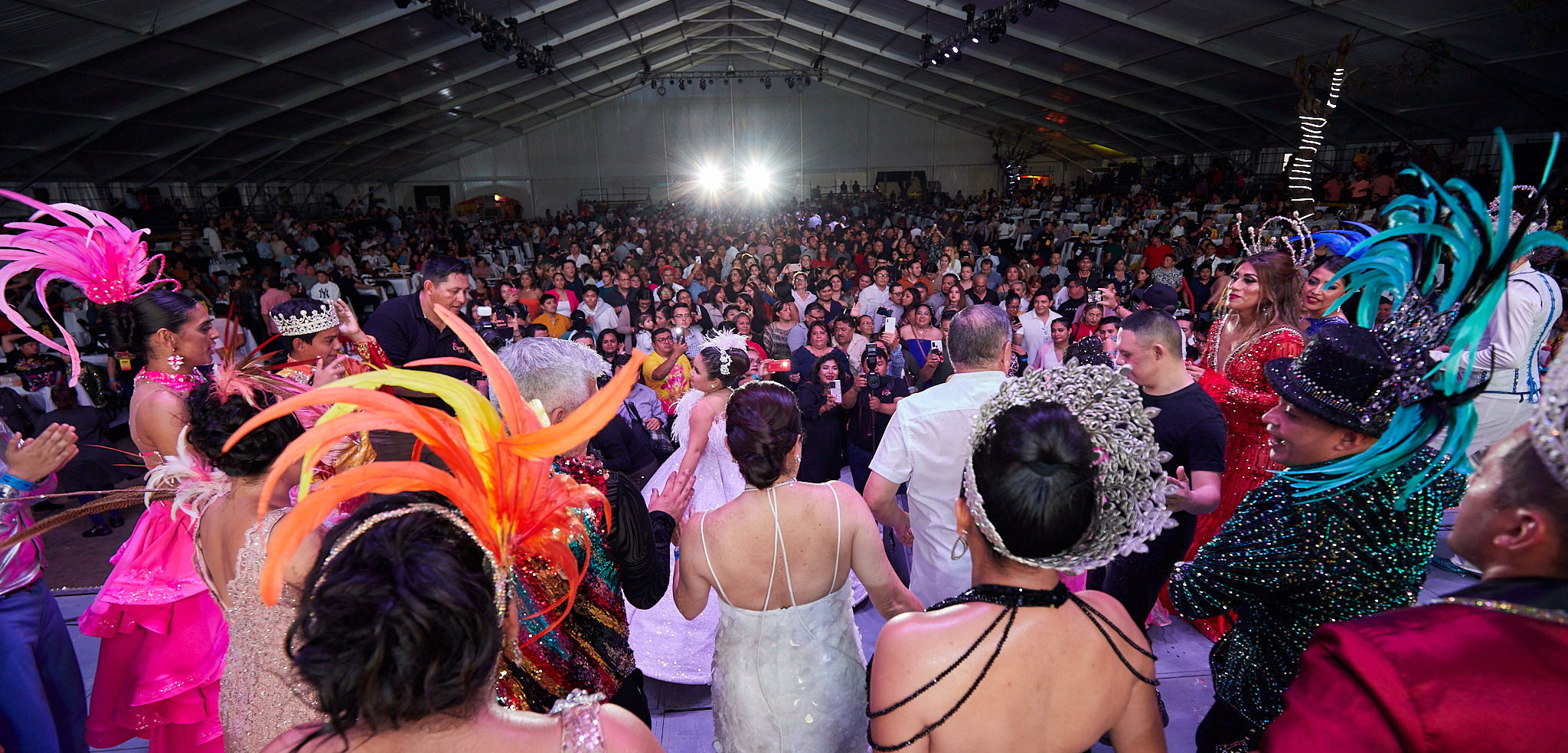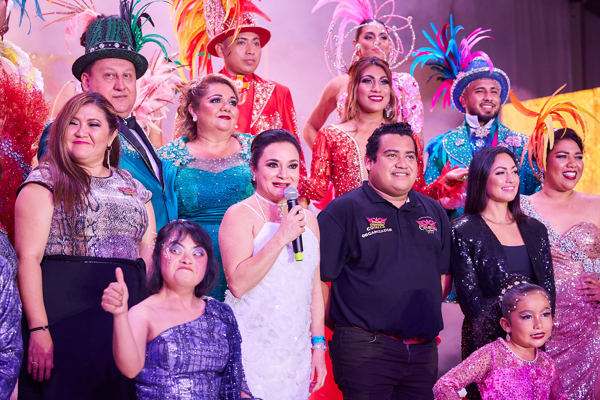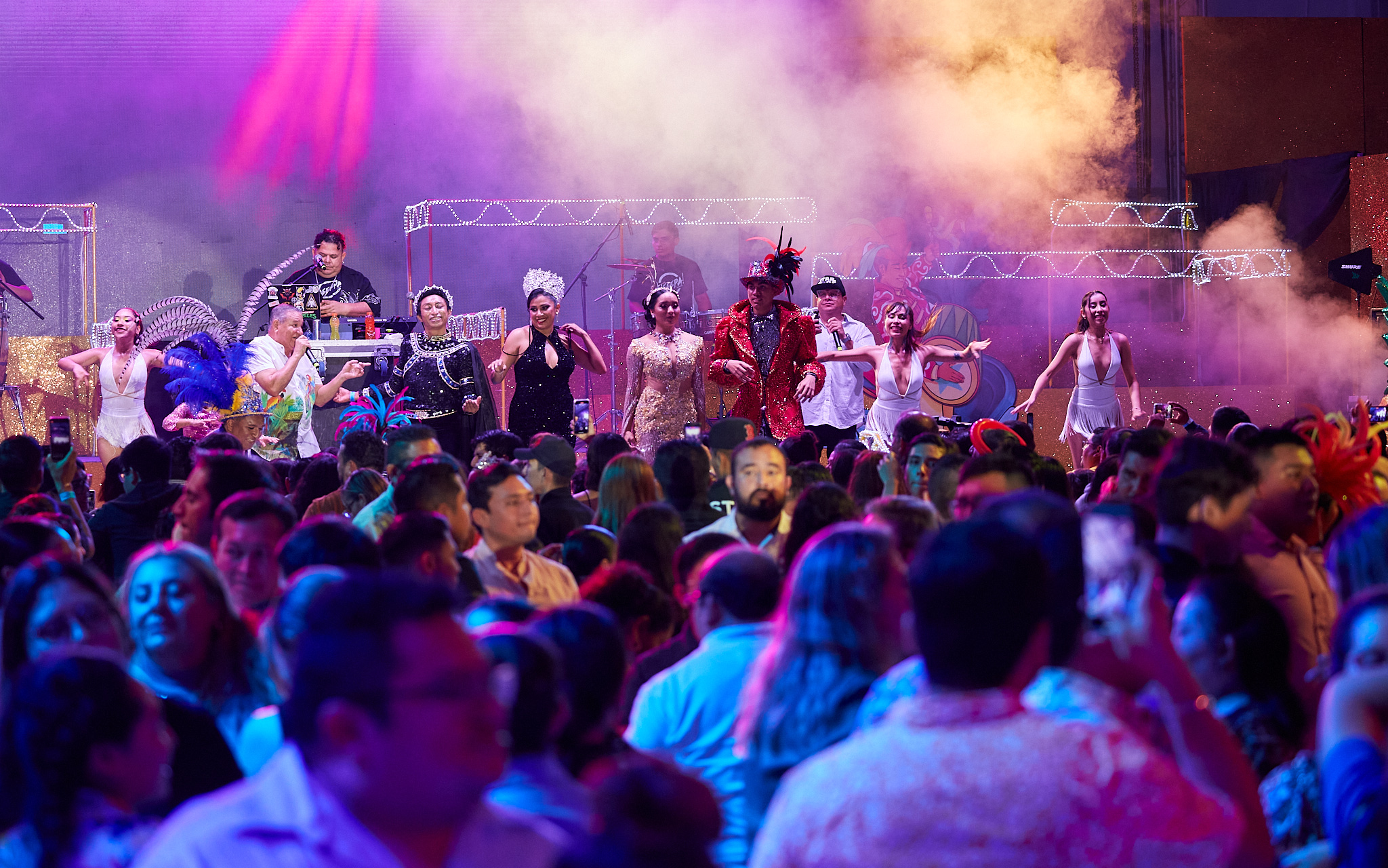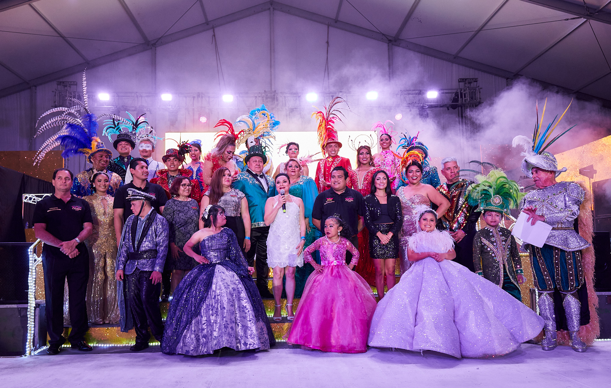 Tras la vueltecita carnavalera por la pista del Palacio del Carnaval y la foto del recuerdo que enmarca el arranque oficial de esta festividad, hizo su aparición en el escenario el autor del tema oficial del Carnaval Cozumel 2023, Pilo Tejeda y su Banda Blanca, que puso a bailar al público asistente al ritmo de punta con sus grandes éxitos y algunos covers, siendo la más coreada “Sopa de caracol”.