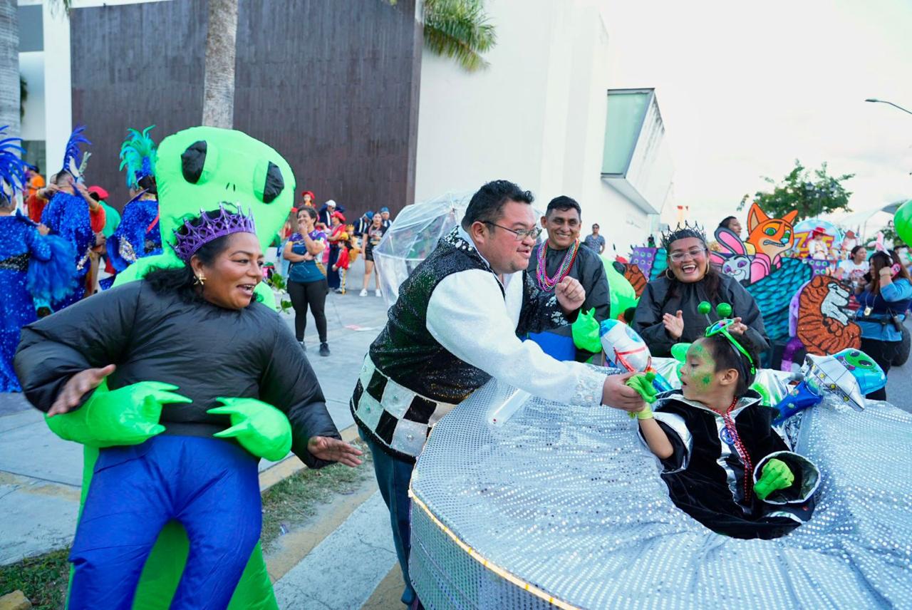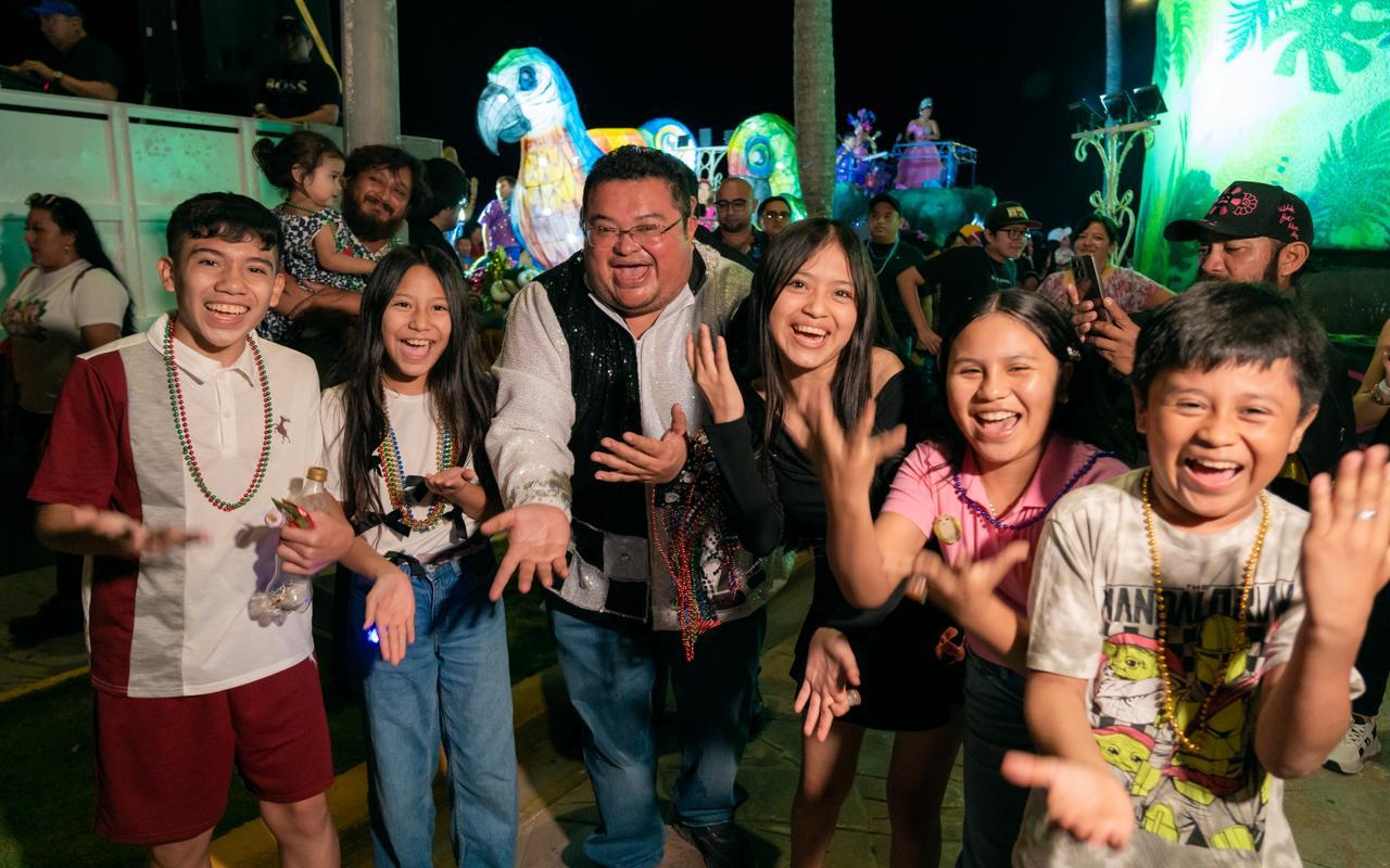 El presidente municipal y su esposa convivieron de manera cercana con el pueblo cozumeleño, saludaron, se tomaron fotografías y entregaron obsequios alusivos al Carnaval, reforzando el espíritu de unidad y celebración que distingue a esta tradición.