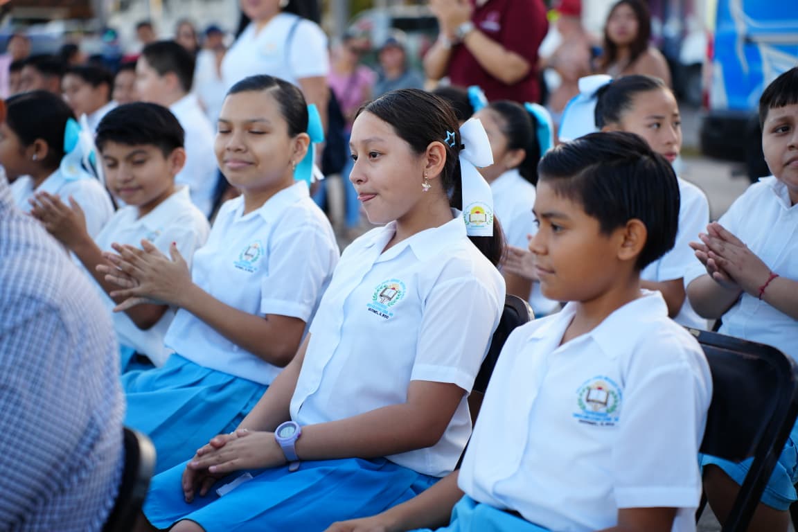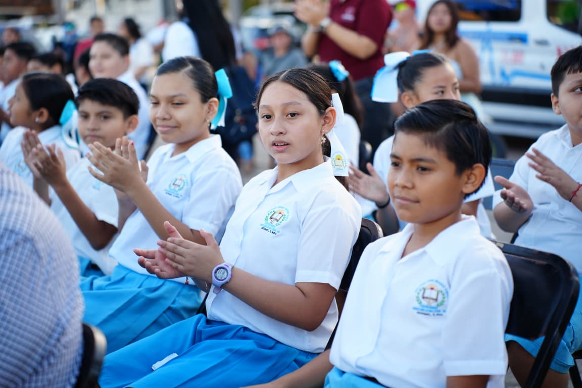 El alumno de la escuela primaria Jorge México Ojeda T.M., Rodrigo Castañeda Gamboa, del 5to B del turno matutino, realizó el juramento a la bandera. Por su parte, las y los alumnos Keily Renata Borges, Mia Guadalupe Tzuc May, Jackson de Jesús Chan Poot, Joseph Esteban Hernández Castañeda, Atenea Ferrera Mendoza y Allie Marile Mex Itzá dieron lectura a las efemérides correspondientes al mes de marzo.
