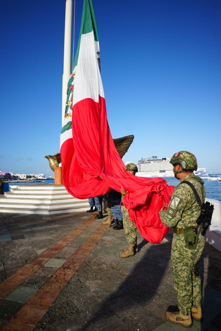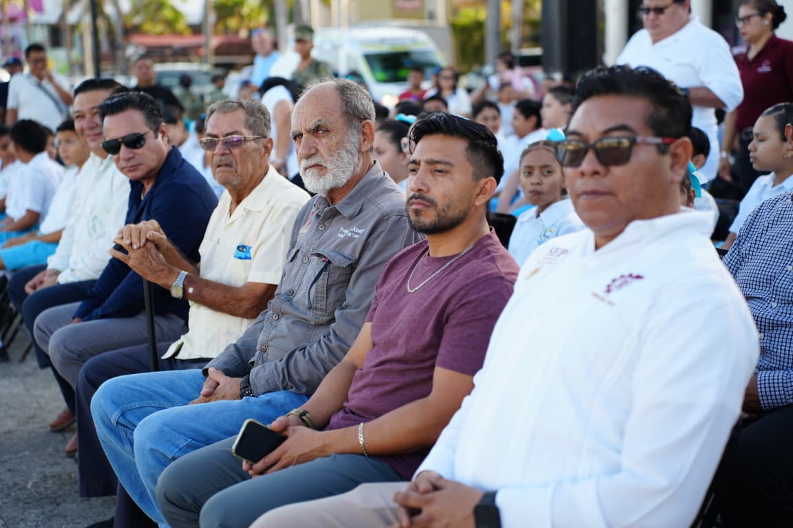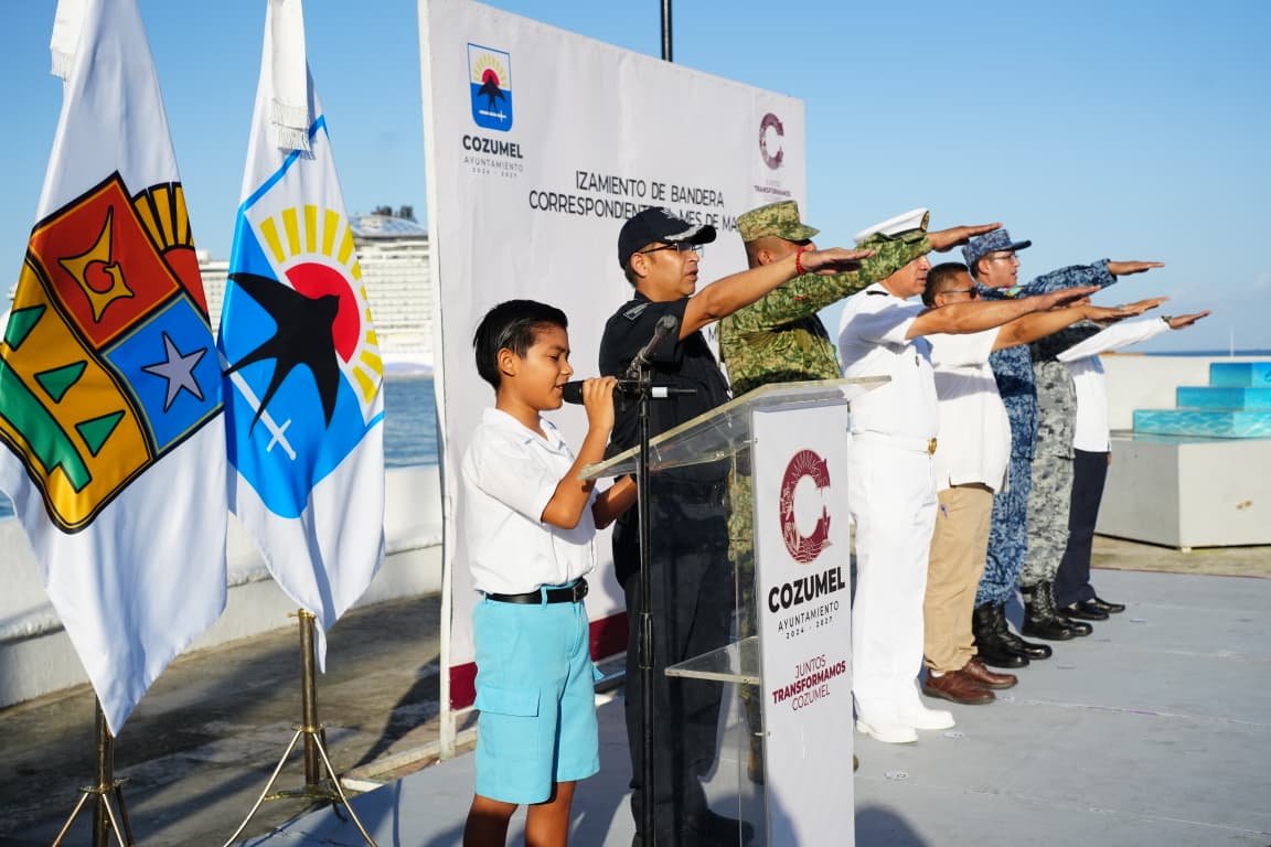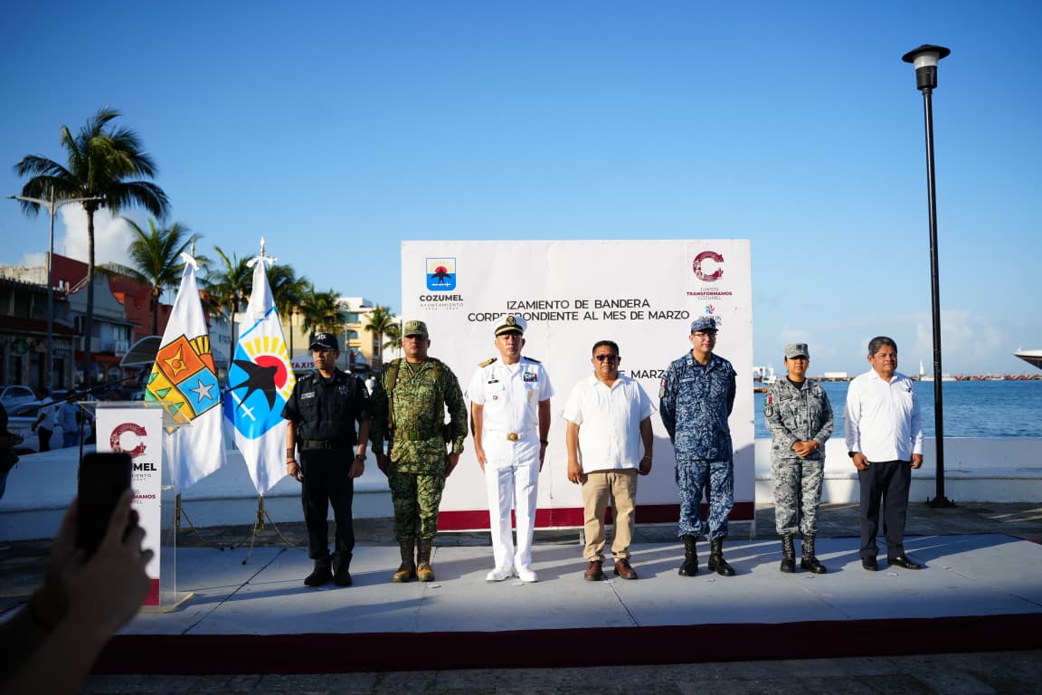 En representación del presidente municipal, José Luis Chacón Méndez, asistió el subdirector de Educación y Biblioteca Pública, Saturnino Magaña Valle, quien estuvo acompañado en el presídium por Pedro Mata Cervantes, capitán de navío cuerpo general de Estado Mayor, comandante del Sector Naval de Cozumel; Osvaldo Pérez Verónico, teniente de transmisiones en representación de la Guarnición Militar de Cozumel; Jesús Andrés Meneses Canchola, capitán primero de Fuerza Aérea piloto aviador de Estado Mayor en representación de la Base Aérea Militar; Laura Blanco Barrera, oficial comandante de la 296 Compañía de la Guardia Nacional en Cozumel; Fernando González Felipe, capitán de corbeta de Infantería de Marina paracaidista, secretario de Seguridad Pública y Tránsito de Cozumel; Javier Augusto Alamilla Polanco, director de Transporte Municipal.