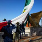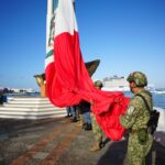 La mañana de este lunes, en la explanada de la Bandera, se llevó a cabo el izamiento de la Bandera Monumental correspondiente al mes de marzo, ceremonia cívica en la que participaron autoridades municipales, fuerzas destacamentadas, así como alumnas y alumnos de instituciones educativas, quienes rindieron los honores correspondientes al lábaro patrio.