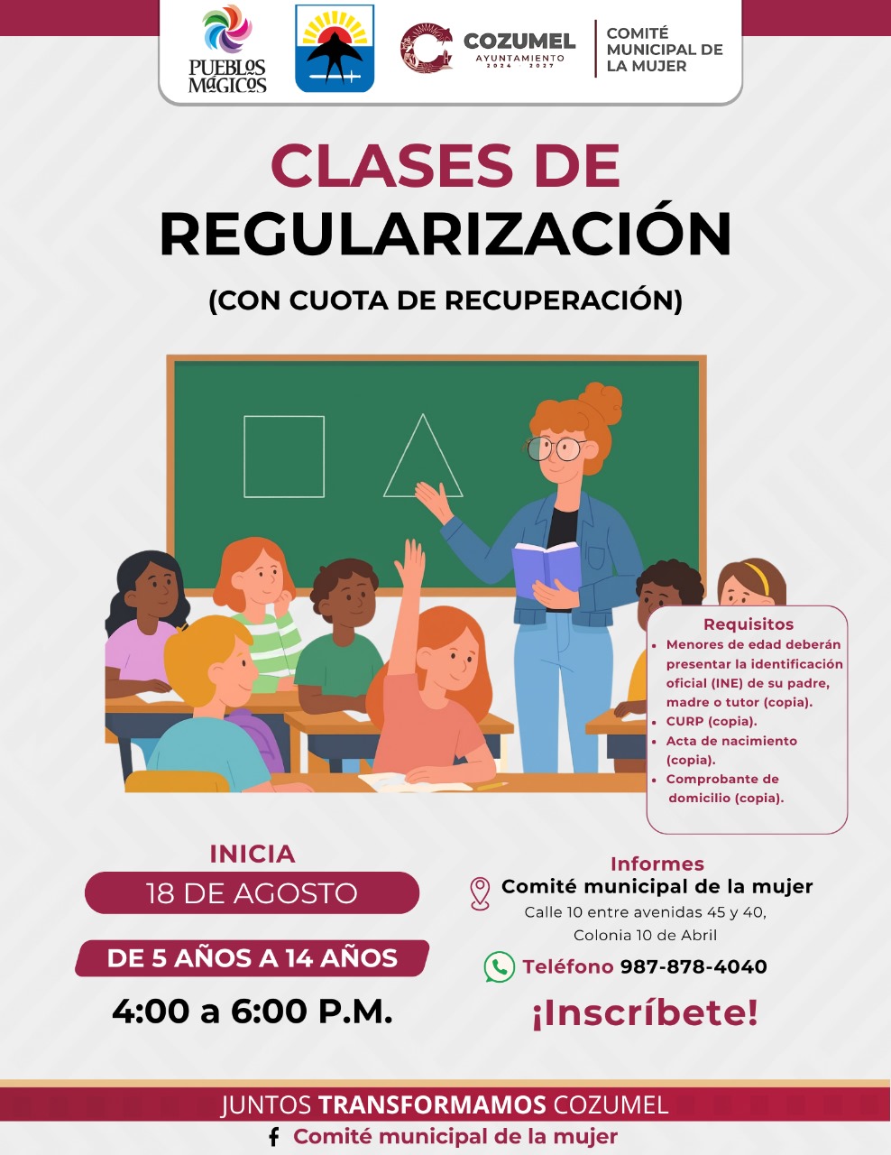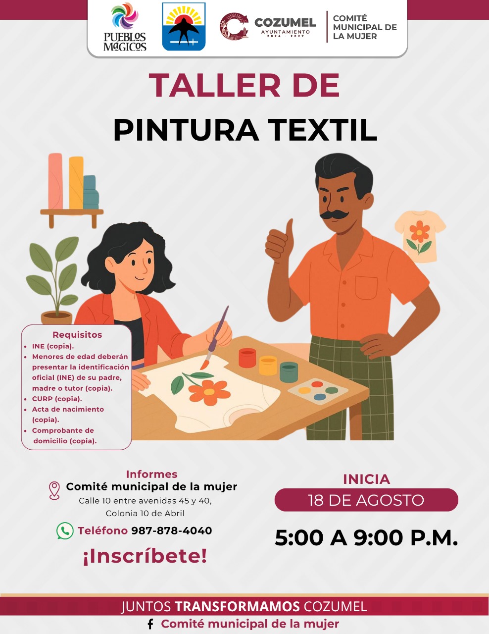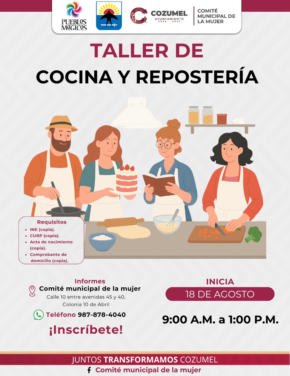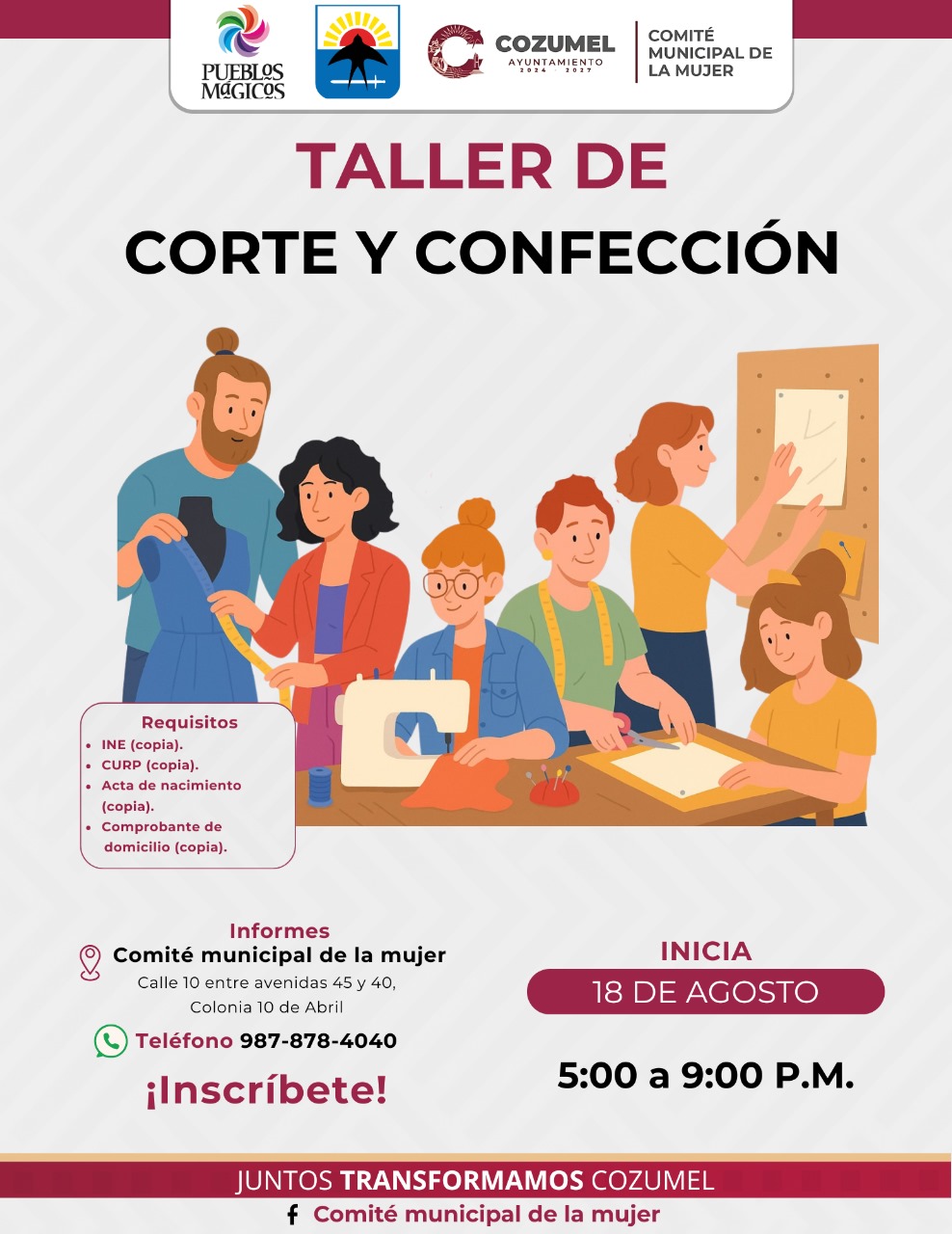 Con estas acciones, el gobierno municipal y el Comité Municipal de la Mujer reafirman su compromiso de construir un Cozumel más justo, inclusivo y con igualdad de oportunidades para todas. Te invitamos a ser parte de este espacio creado para aprender, crecer y desarrollarte personal y profesionalmente. Para más información comunícate al 987 878 4040.
