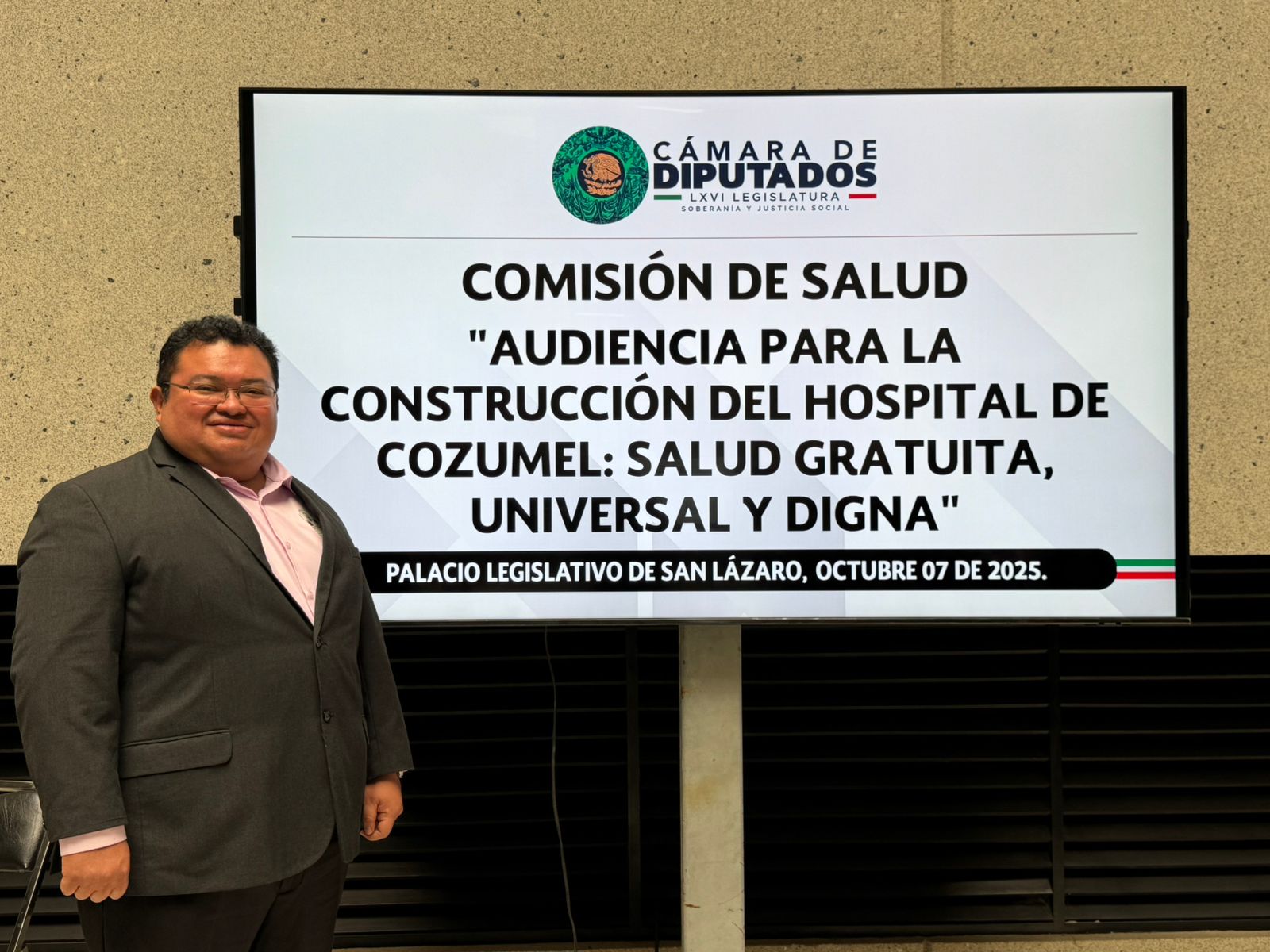 En un esfuerzo por garantizar atención médica digna y oportuna para las y los cozumeleños, el presidente municipal José Luis Chacón Méndez acudió a la Cámara de Diputados para participar en la audiencia “La Construcción del Hospital de Cozumel: Salud gratuita, universal y digna”, convocada por la Comisión de Salud, con el objetivo de exponer la urgencia de ampliar la cobertura hospitalaria en la isla.