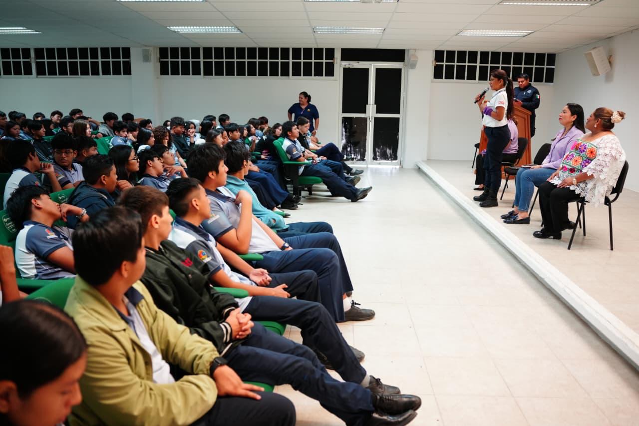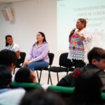 Asimismo, señaló que fue muy emotivo compartir este conversatorio con destacadas mujeres como la secretaria general del Ayuntamiento, Margarita Vázquez Barrios, y la delegada Aurora Miranda Novelo, quienes aportaron sus experiencias y reflexiones para motivar a las y los jóvenes a construir entornos más seguros, justos y respetuosos.