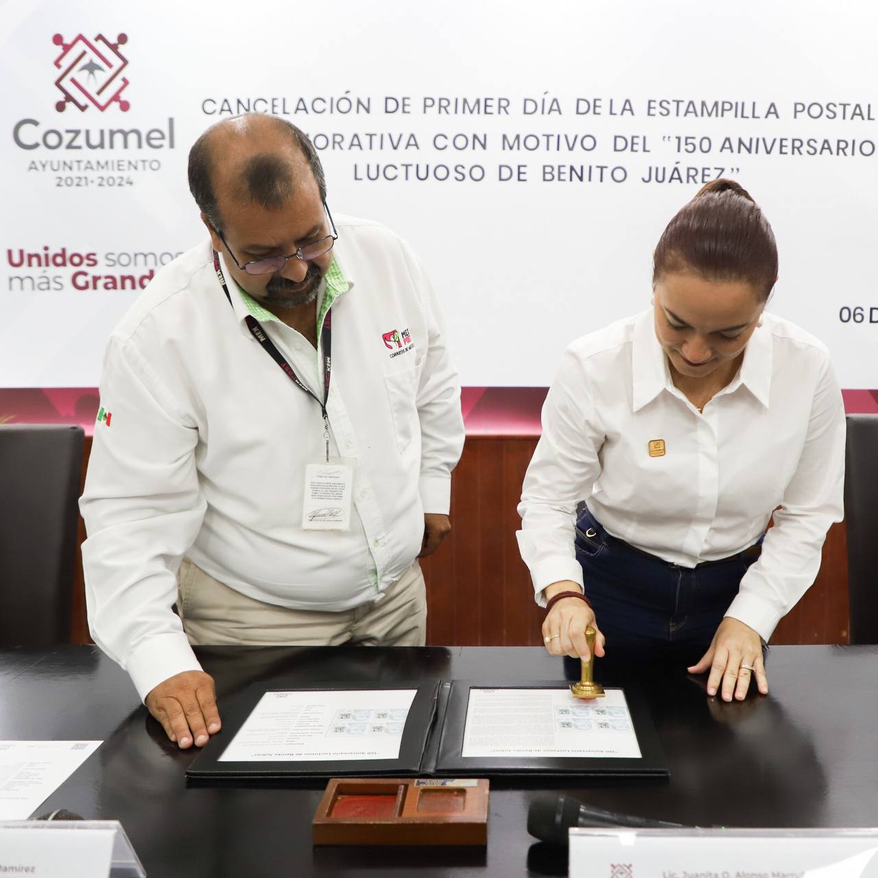 Acompañaron a la edil Juanita Alonso en presídium María Mercedes Mazun Mendoza, jefe de oficina de Correos de México en Cozumel; Ramón Ignacio Díaz Ek, secretario general del Sindicato de Correos de México en Quintana Roo e Isela Carrillo Cupul, directora del Museo de la Isla.