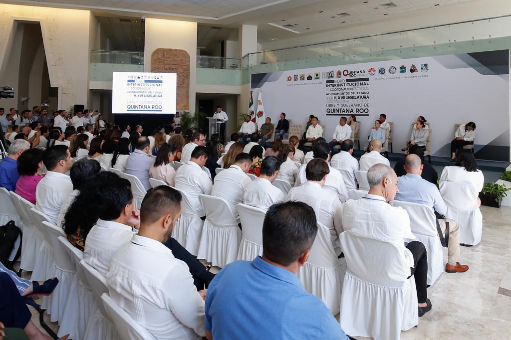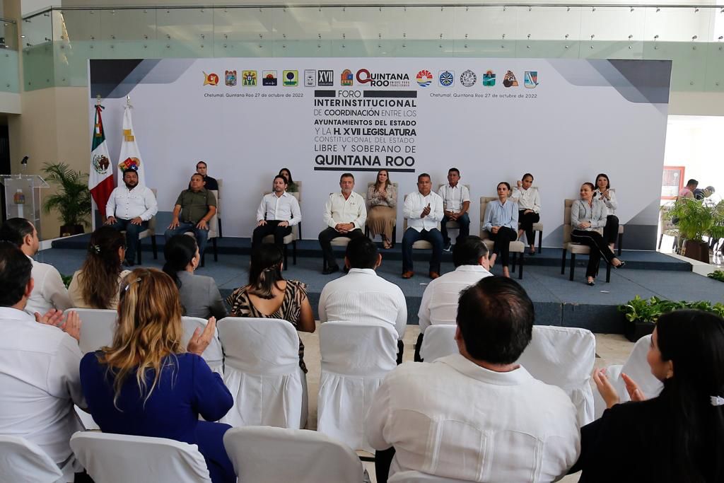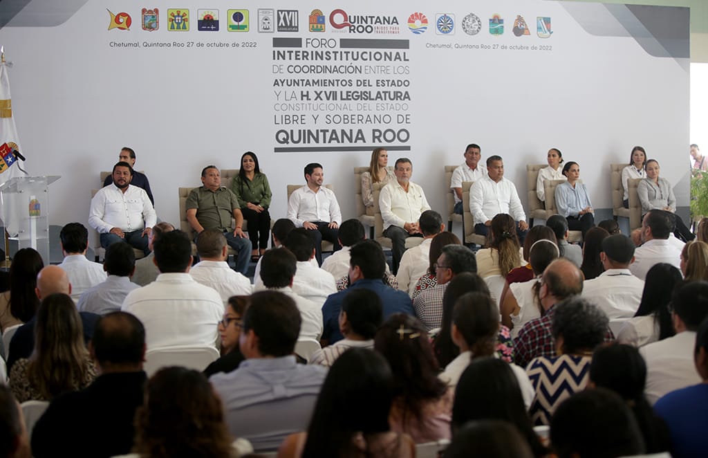 El foro realizado en el Centro de convenciones de Chetumal estuvo encabezado por el presidente de la Junta de Gobierno y coordinación política del Congreso del Estado, Renán Sánchez Tajonar, en el cual se llevó a cabo un ejercicio plural y democrático donde convergieron las sumas de voluntades de los once municipios para generar una agenda de trabajo que garantice el bien común de Quintana Roo.