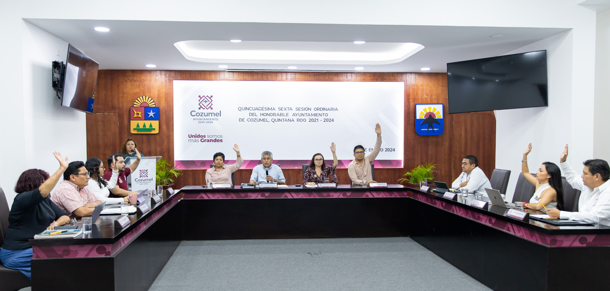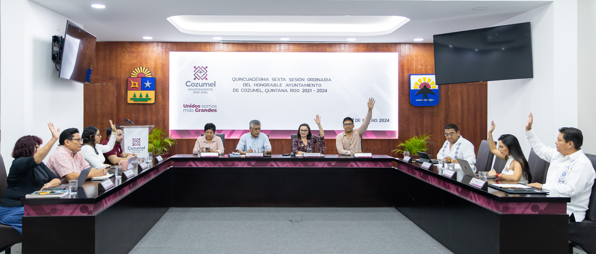 Cuerpo colegiado de Cozumel aprobó por mayoría dos iniciativas por las que se reforma la Constitución Política del Estado Libre y Soberano de Quintana Roo, esto durante la Quincuagésima sexta Sesión ordinaria de Cabildo donde la presidenta municipal Juanita Alonso Marrufo informó al pleno su intención de participar por la reelección en el Proceso Electoral Local 2024.