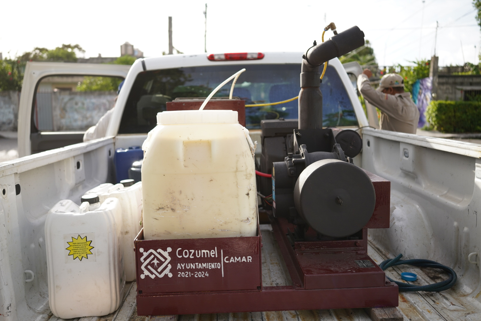 En la lucha constante contra el dengue este martes luego de puesta en marcha la jornada municipal de nebulización se atendieron las colonias Emiliano Zapata y San Miguel y a través de una calendarización se atenderán diversas colonias de la isla para controlar el mosco adulto transmisor, a la par, CAMAR realiza las jornadas de descacharrización para prevenir posibles criaderos de mosquitos, vectores y otras plagas.