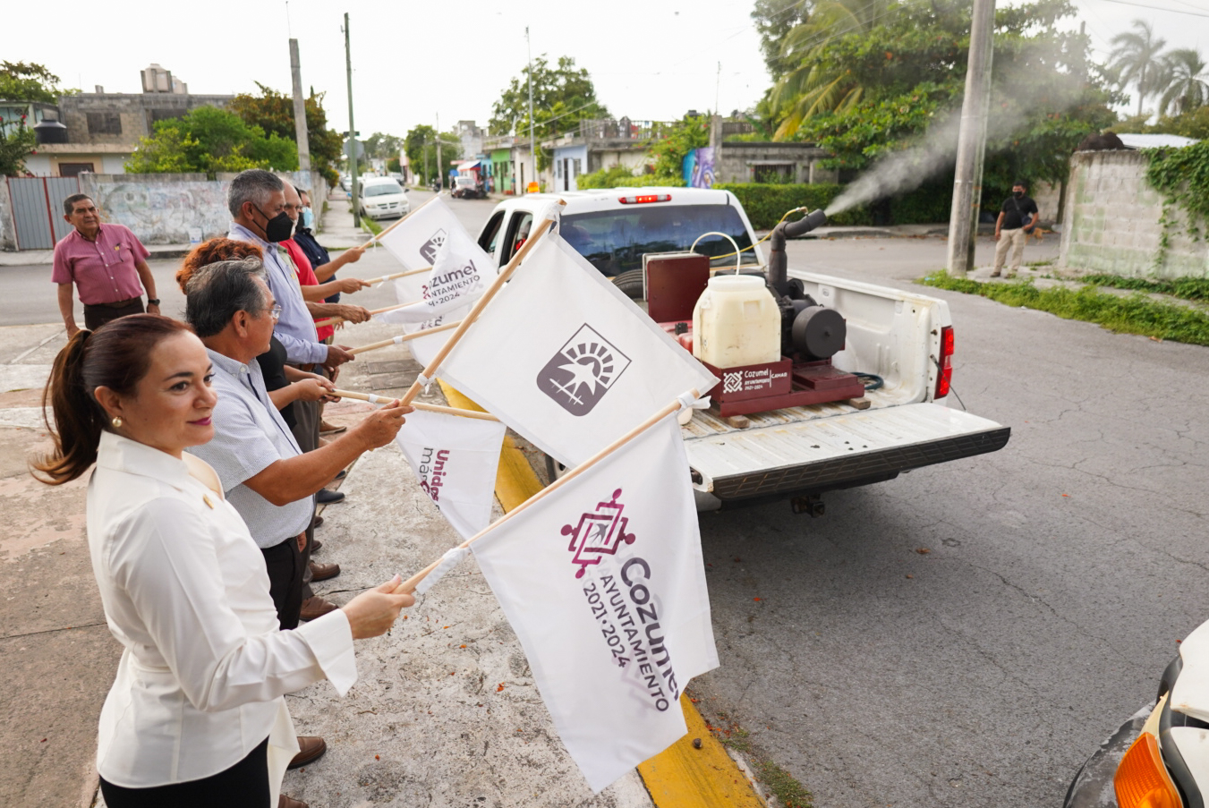 Con el objetivo de impulsar medidas necesarias para prevenir riesgos sanitarios que protejan a las familias de Cozumel, la presidenta municipal Juanita Alonso Marrufo dio el banderazo de inicio de la primera “Jornada Municipal de Nebulización contra el Dengue” que estará atendiendo principalmente las zonas con mayor incidencia de mosco transmisor del dengue, zika, chikungunya y otros padecimientos de riesgo.
