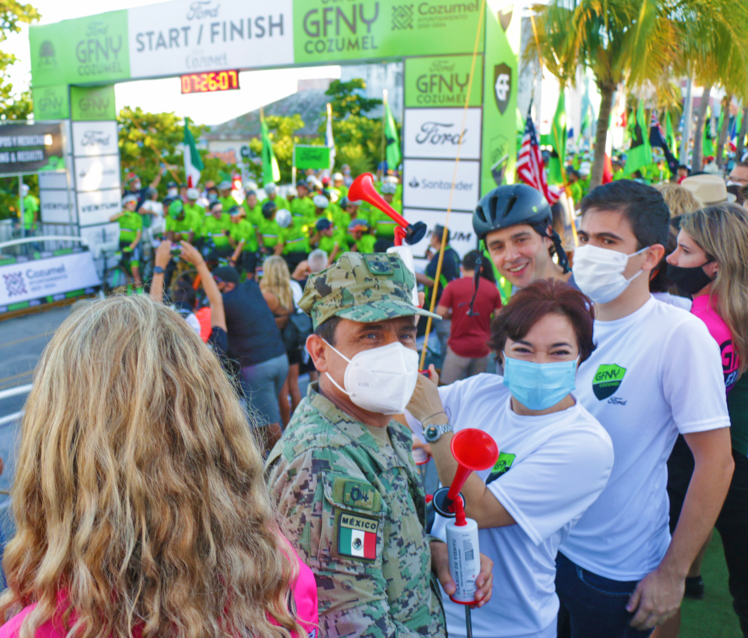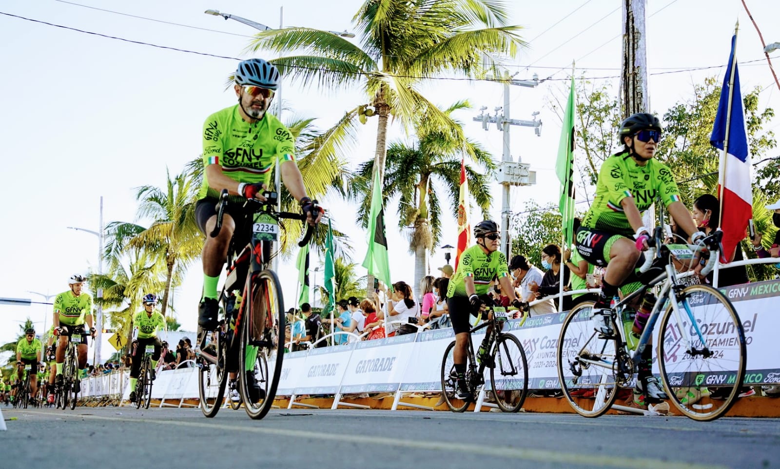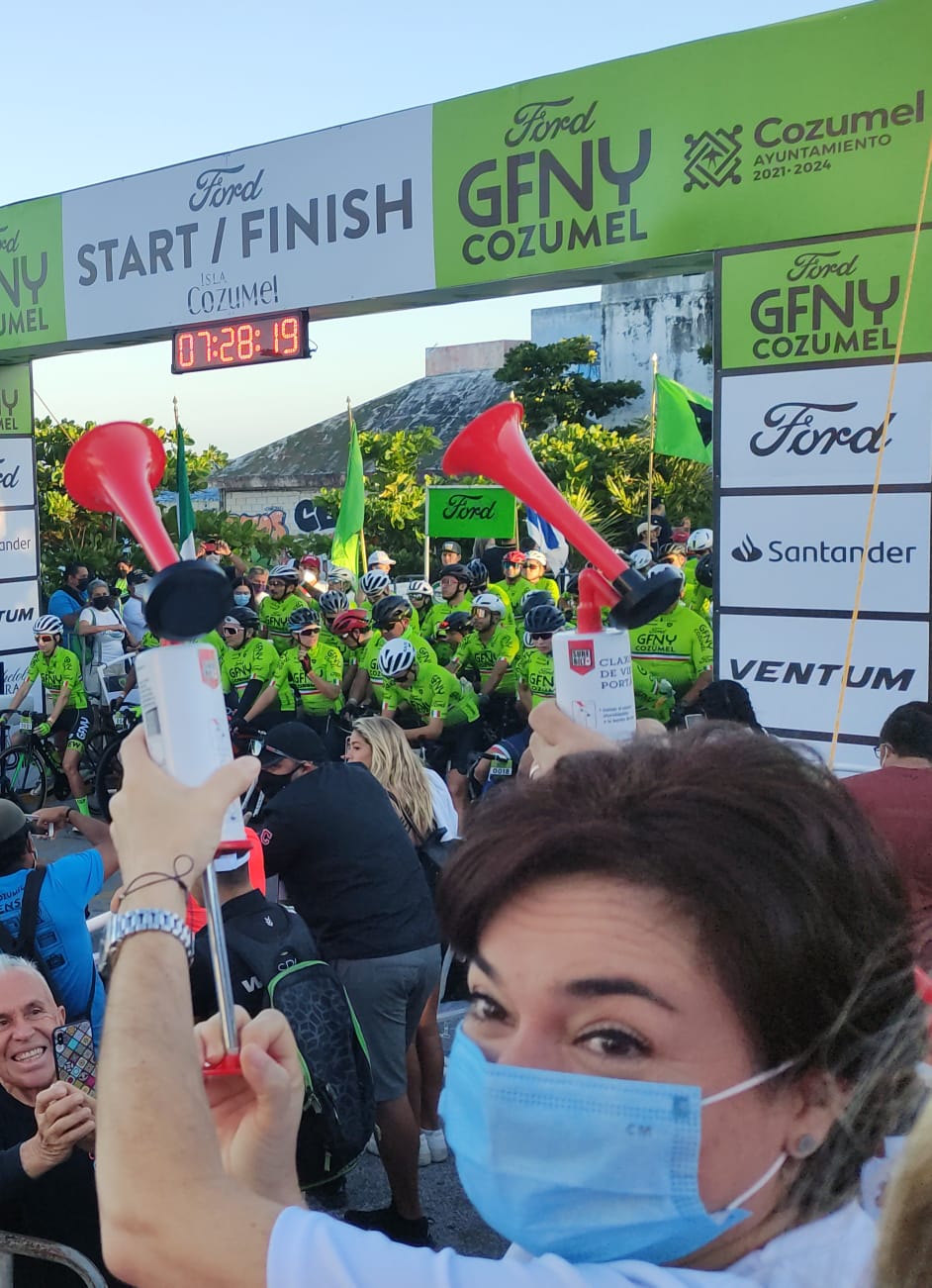 En un ambiente de fiesta dio inicio la octava edición del Gran Fondo New York (GFNY COZUMEL 2021) en la que participa un total de 3 mil 100 competidores de 50 países, siendo la presidenta municipal, Juanita Alonso Marrufo, quien se encargó de dar la señal de salida.