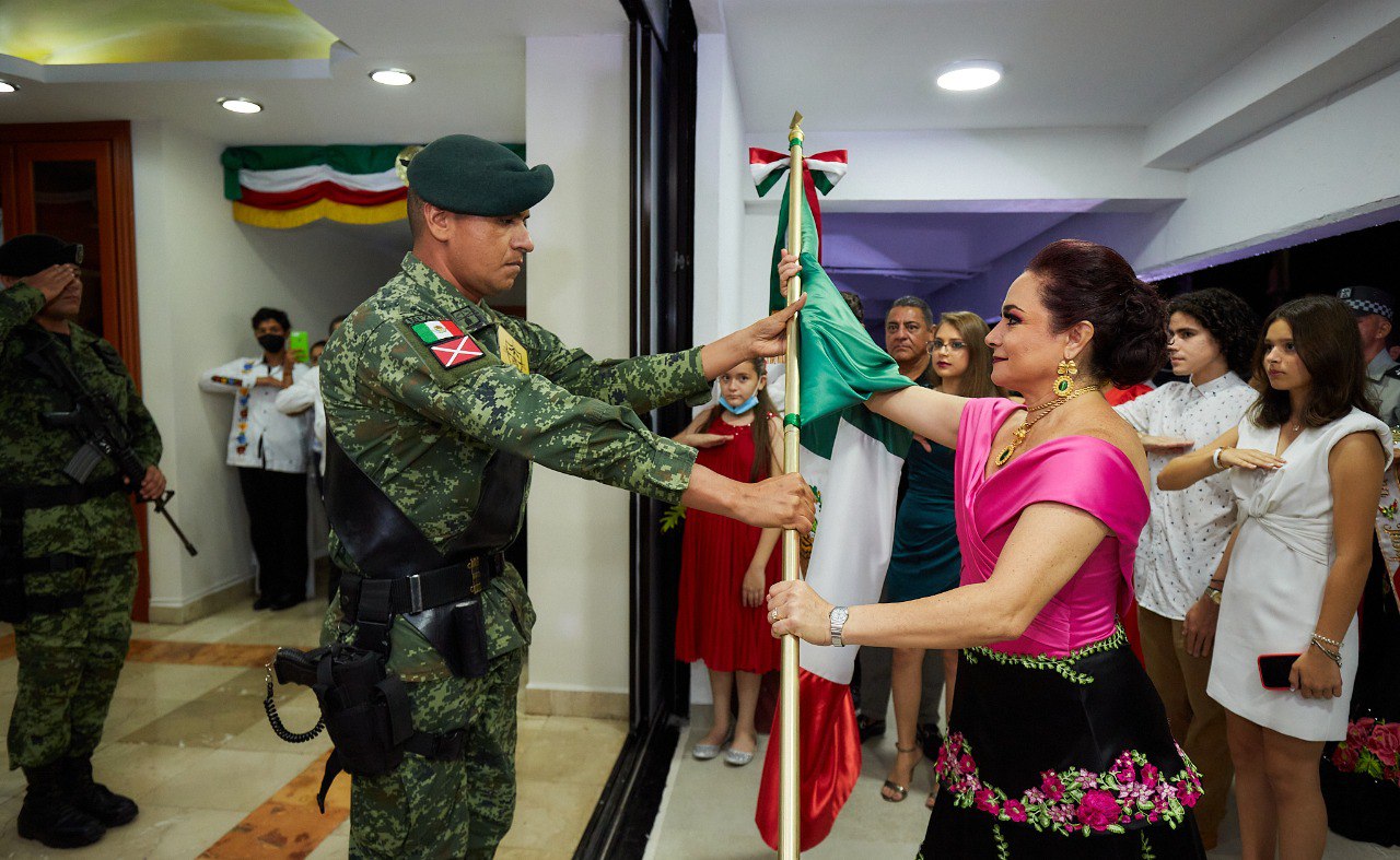 La ceremonia protocolaria que tuvo lugar en el balcón del palacio municipal inició luego de que la munícipe recibiera el Lábaro patrio que minutos después ondeó al mismo ritmo que hizo sonar la campana, emulando el grito del Padre de la Patria, Miguel Hidalgo y Costilla, quien hace 212 años hizo el llamado para el levantamiento en armas para luchar por la independencia del pueblo mexicano.
