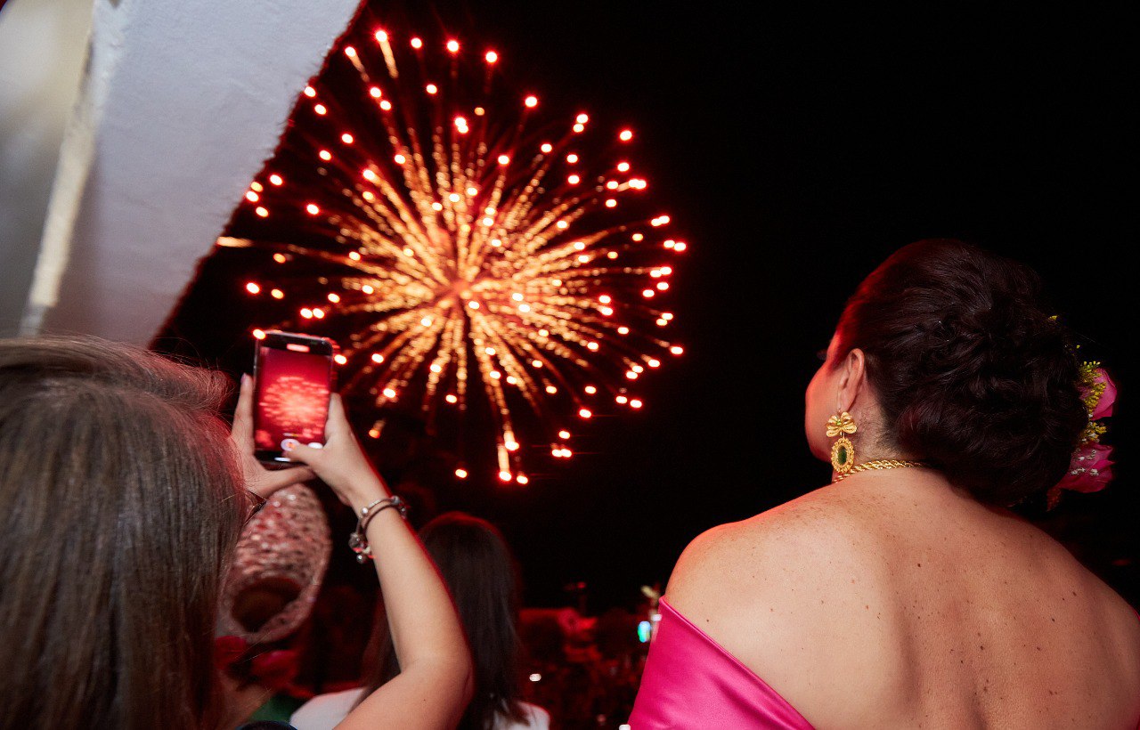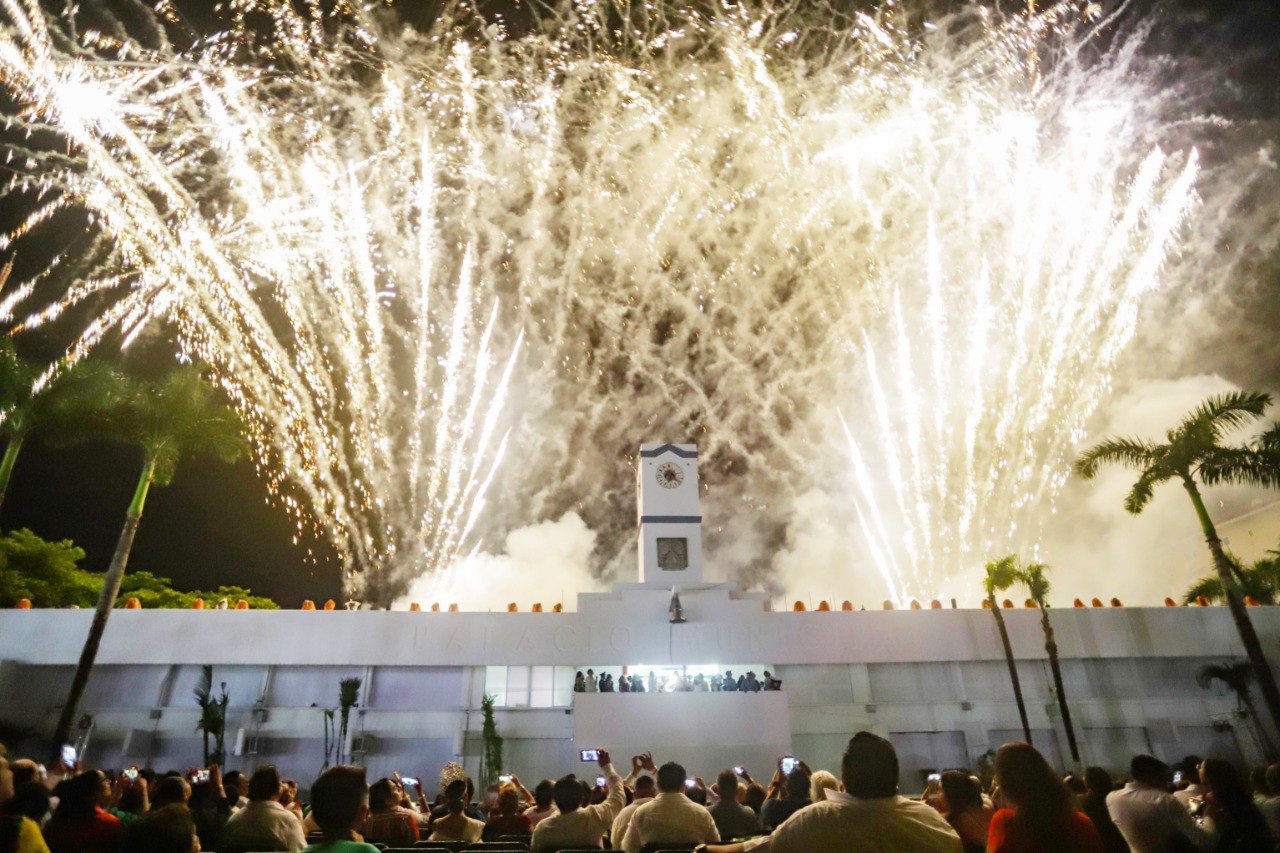 Luego de la ceremonia dio inicio el espectáculo de los juegos pirotécnicos que fueron admirados por las familias cozumeleñas y turistas que se congregaron en dicho recinto para disfrutar y compartir esta importante celebración que fue amenizada en el escenario del parque Quintana Roo por el cantante de música vernácula, Armando Ferral, así como la banda de Didier Castilla y su Arraigo.