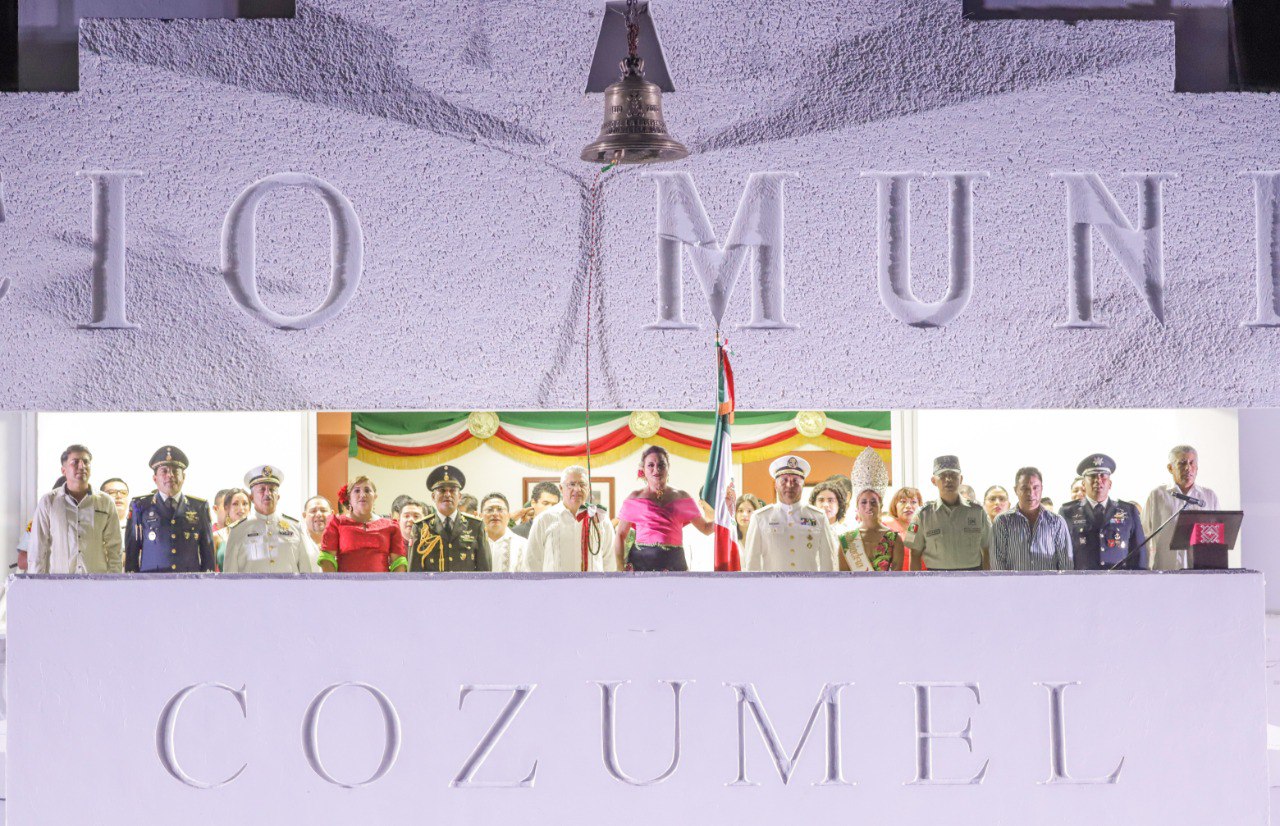 ¡Mexicanos y mexicanas!, ¡Vivan los héroes que nos dieron patria!, ¡Viva Hidalgo!, ¡Viva Morelos!, ¡Viva Josefa Ortiz de Domínguez!, ¡Viva Allende!, ¡Viva Aldama!, ¡Viva Galeana!, ¡Viva Matamoros!, ¡Viva Guerrero!, ¡Viva la Independencia Nacional! ¡Viva Cozumel!, ¡Viva Quintana Roo!, ¡Viva México!, ¡Viva México!, ¡Viva México!”, exclamó la munícipe ante la multitud que respondió en todo momento con el acostumbrado ¡Viva!, en el parque Quintana Roo.