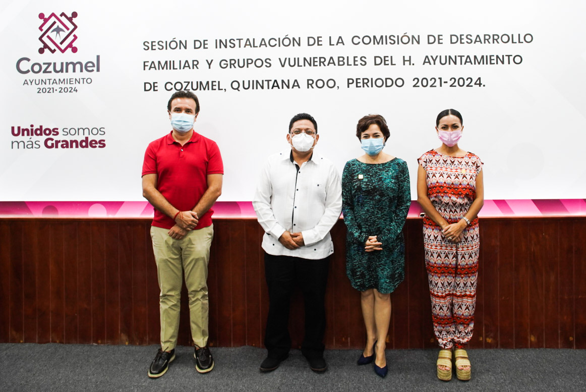 A fin de atender desde el lado más sensible y humano posible, a la población más desprotegida de la isla, la presidenta municipal, Juanita Alonso Marrufo, encabezó en el Salón Municipios de Quintana Roo la instalación de la Comisión de Desarrollo Familiar y Grupos Vulnerables de Cozumel para el periodo municipal 2021-2024, que presidirá el regidor, Juan Carlos Góngora Aké.