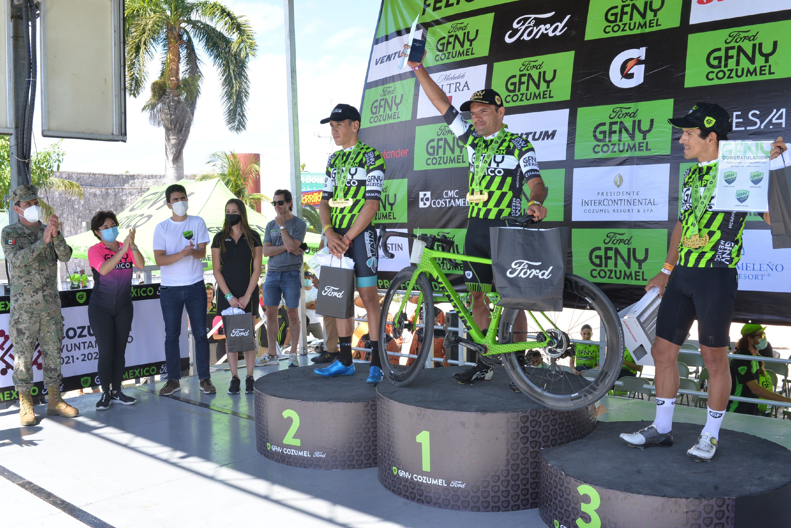 Los ganadores del GFNY Cozumel 2021 de la rama “Varonil” fueron, en primer lugar, Eduardo Garita Gamboa de Costa Rica, en segundo lugar Edibaldo Maldonado de Guadalajara y en tercer lugar Flavio de Luna de Aguas Calientes, en tanto que en la “Femenil” el primer lugar fue para María Antonieta Gaxiola González de Sinaloa, segundo lugar Andrea Flores de Monterrey y en tercer lugar Monserrat Camargo de Ciudad de México, en esta categoría los competidores recorrieron contra reloj una ruta de 160 kilómetros, o lo que es igual dos vueltas a la isla, en tanto que en la distancia media de 80 kilómetros, se trató de un recorrido de convivencia, no competitivo.