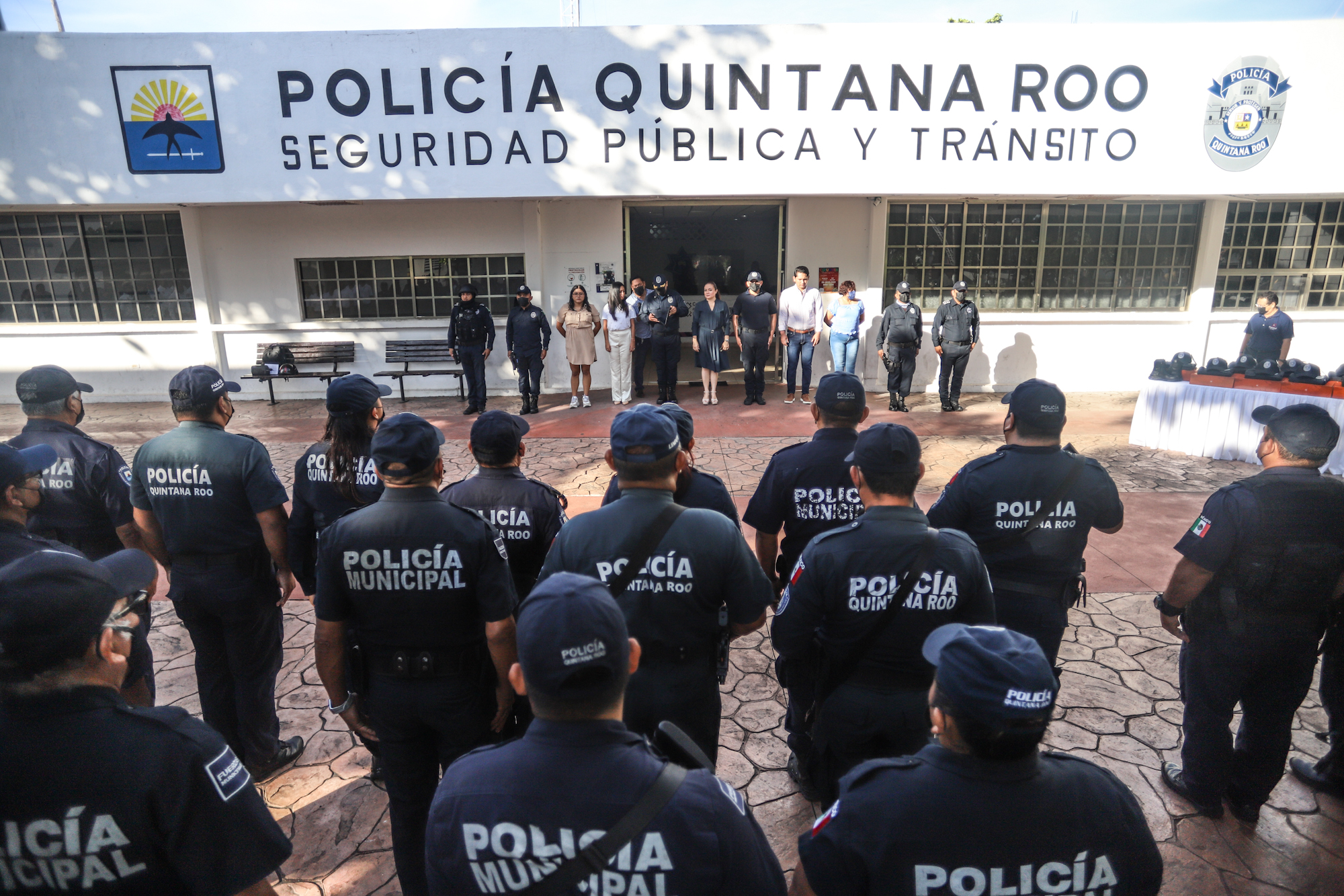 Como parte del compromiso de fortalecer y dignificar a la corporación policiaca de la isla, la presidenta municipal, Juanita Alonso Marrufo llevó a cabo durante el pase de lista la entrega de uniformes a los elementos de la dirección de Seguridad pública y tránsito, a quienes exhortó a mantener el compromiso y redoblar el esfuerzo en favor de quienes habitan y visitan este destino turístico.