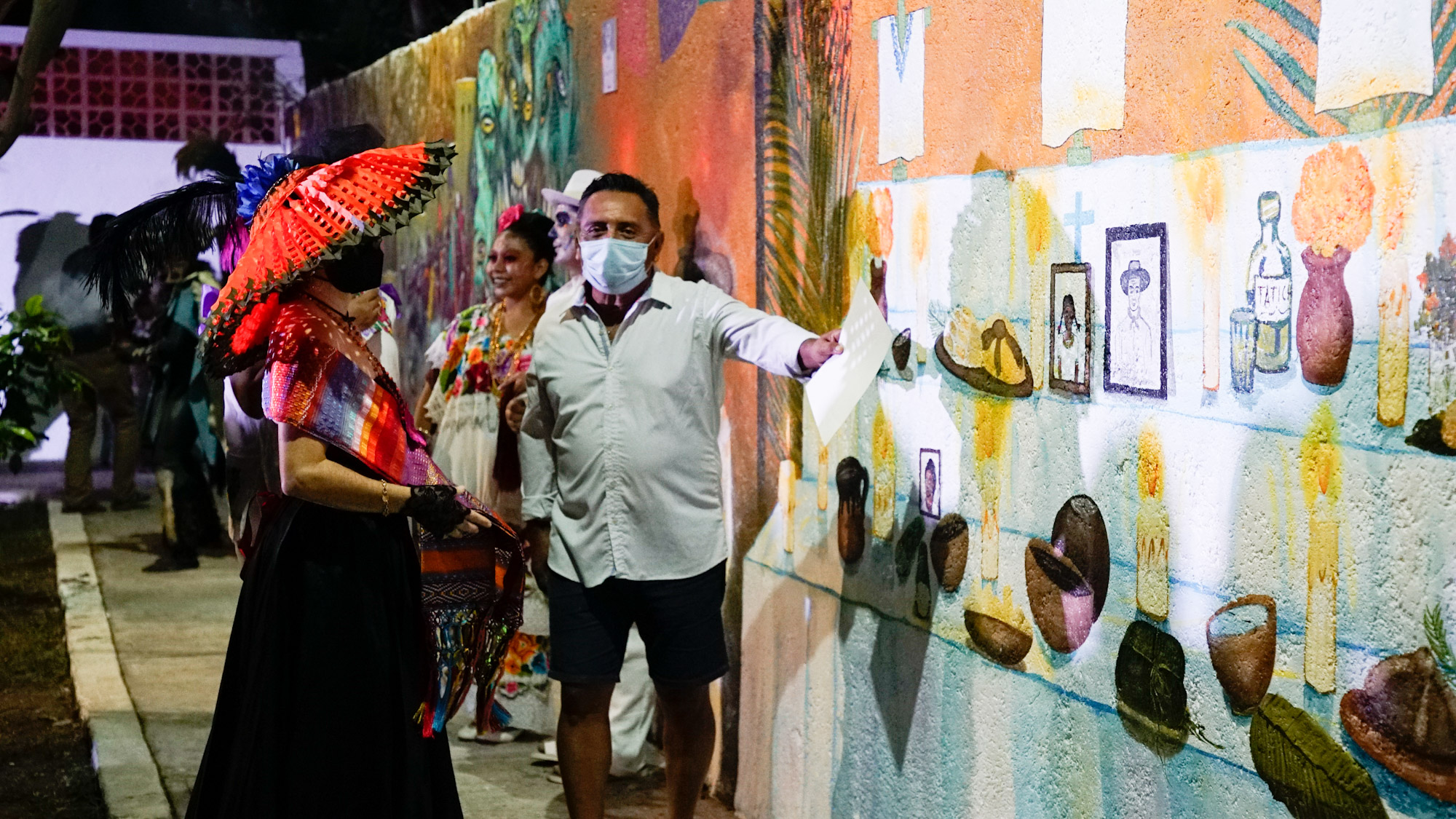 Como parte del Festival de Día de Muertos, la presidenta municipal, Juanita Alonso Marrufo, llevó a cabo la inauguración del mural colectivo “Almas con Tradición”, donde también fue presentada la semblanza histórica del Panteón San Miguel de Cozumel.