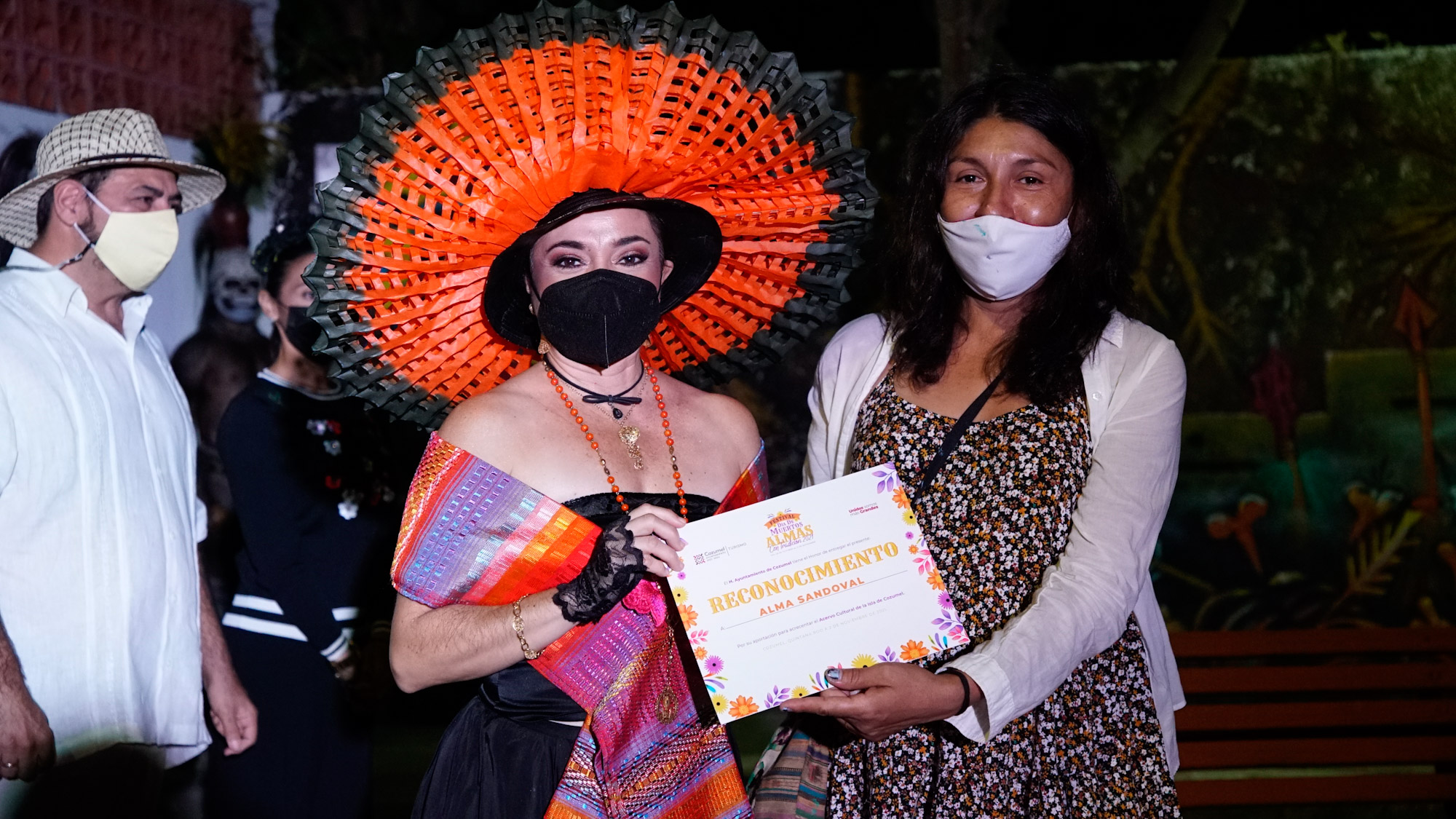 El mural “Almas con Tradición” consta de tres facetas: “Prehíspanico” que plasma la cosmogonía maya con el Dios Ah Puch desde un extremo reinando el inframundo; “Maya” que representa el Hanal Pixan, tradición de la Cultura maya conocida como Comida de Ánimas”, y la tercera que es “Contemporáneo” que refiere a las ánimas atravesando el inframundo, llevando consigo las ofrendas del Hanal Pixan” en una visión más moderna. Los artistas recibieron reconocimientos por su trabajo.