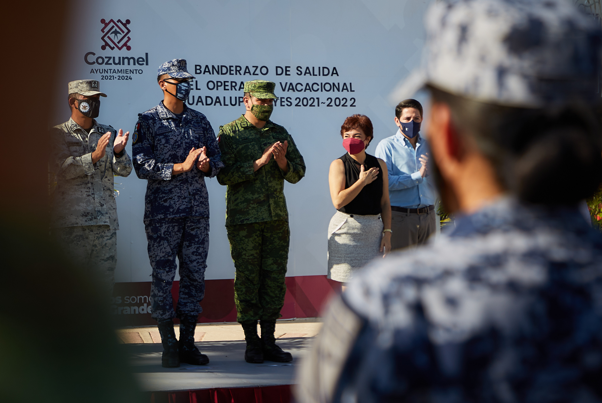 Acompañada por autoridades civiles y militares, la Presidenta Municipal emitió un mensaje previo a la puesta en marcha del operativo vacacional, en el que señaló que la labor que llevan a cabo los participantes, es primordial para que Cozumel siga siendo un destino seguro, en especial en éstas fechas cuando la afluencia de visitantes nacionales y extranjeros se incrementa.