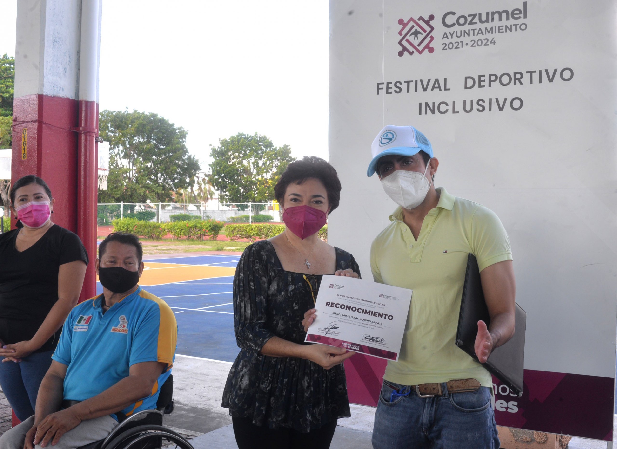 La presidenta municipal Juanita Alonso Marrufo destacó la importancia de continuar llevando a cabo acciones inclusivas encaminadas al bienestar de la comunidad de la isla, en el marco del “Día Internacional de las Personas con Discapacidad” se llevó a cabo el Festival Deportivo Inclusivo, en el que se realizó un encuentro de baloncesto en silla de ruedas entre los Huracanes de Playa del Carmen y los Mapaches de Cozumel y una plática motivacional a cargo de Jaime Isaac Aquino Zapata.
