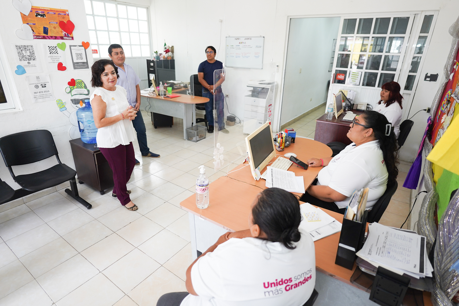 Durante la jornada, la munícipe recorrió las oficinas del Centro de control animal (CCA); Atención a la juventud, Cultura, Comité municipal de la mujer (Comumu), así como la subdirección de Educación y biblioteca pública municipal “Gonzalo de J. Rosado Iturralde”, donde saludó a cada trabajador y corroboró las funciones que realizan.
