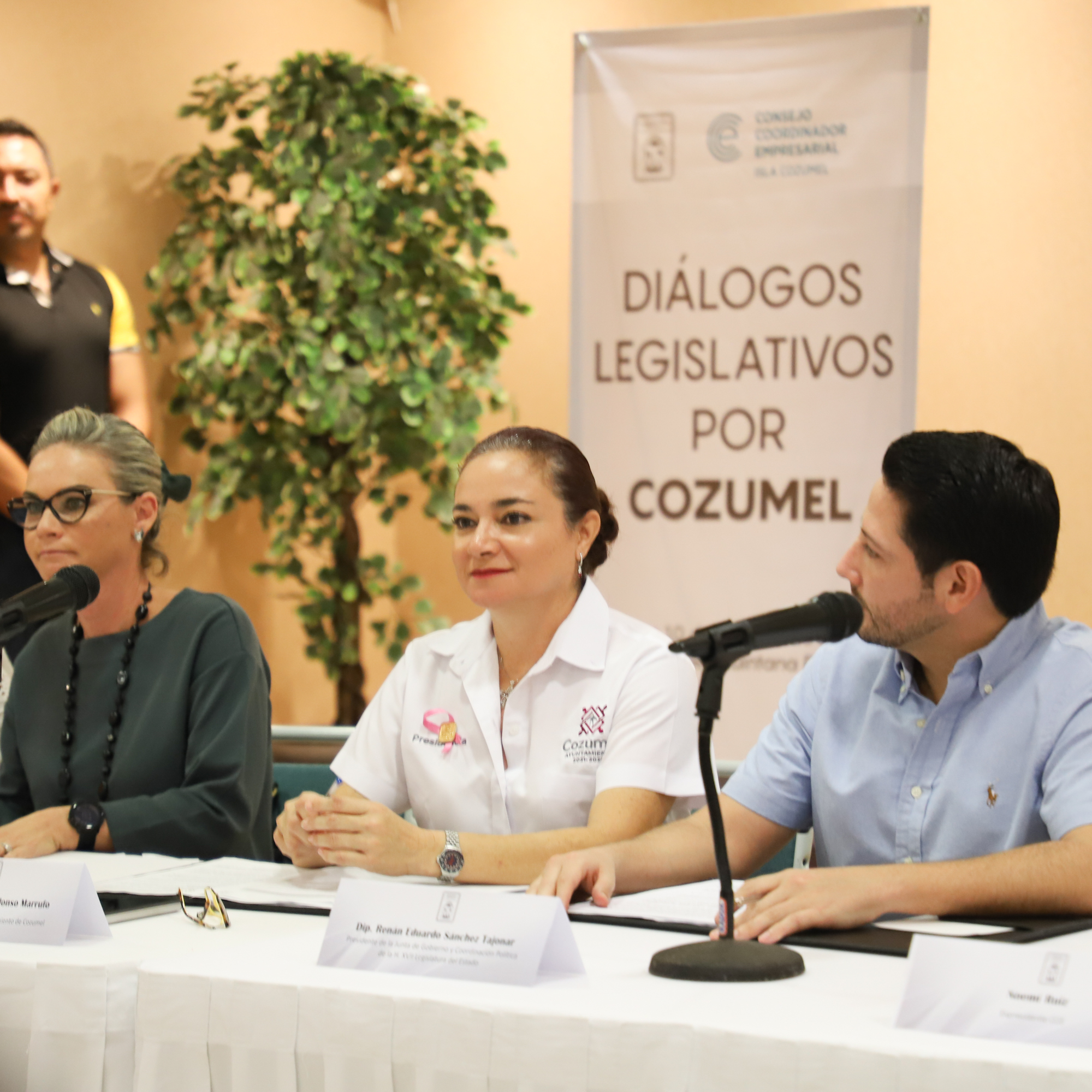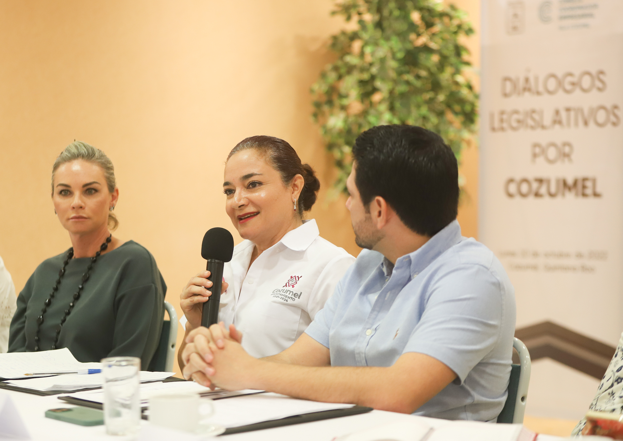 La presidenta municipal, Juanita Alonso Marrufo acompañó al diputado local, Renán Sánchez Tajonar en sus “Diálogos Legislativos por Cozumel”, en la que también se contó con la presencia de los empresarios miembros del Consejo Coordinador Empresarial de la isla (CCE), donde el objetivo fue generar una agenda de trabajo que integre al sector gobierno, legislatura y privado para ser llevada hasta el Congreso del Estado y así cubrir las necesidades apremiantes de la localidad.