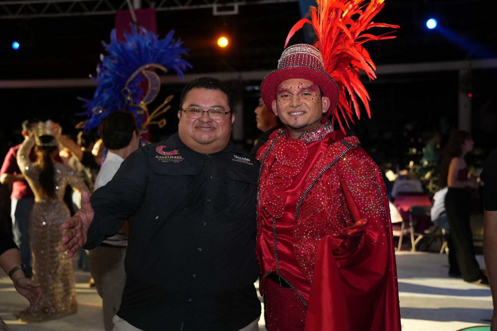 Al inicio de la velada el presidente municipal recorrió todo el recinto carnavalero saludando a las y los asistentes y visitando los camerinos para desear suerte a las y los participantes. La isla brilló una vez más con el arranque del ballet oficial, que estrenó la pista de la magna fiesta ataviado con espectaculares trajes brillosos en tonos verdes y rojos, derrochando alegría, sensualidad y ritmo latino. La noche fue conducida por Marifer Sosa y Adrián Pérez Gaeta, conductores oficiales del Carnaval 2026, en presencia de autoridades municipales, regidores, consejeros y soberanos 2025 de las distintas categorías, quienes engalanaron la velada.
