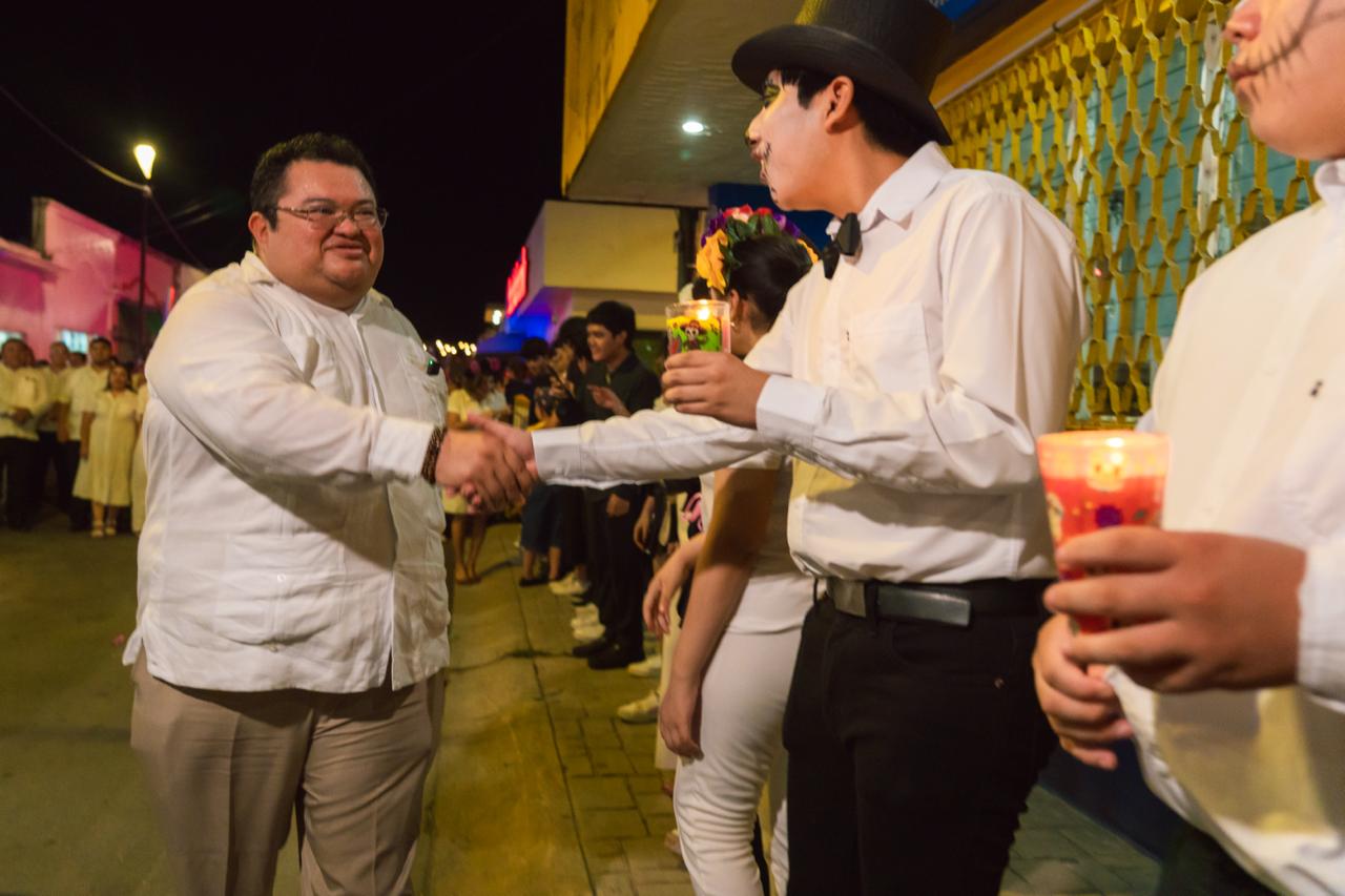 El evento, que tuvo como escenario principal el parque Benito Juárez, reunió a cientos de familias cozumeleñas y visitantes que disfrutaron de la procesión de ánimas, el video mapping “Almas de la Isla” y una noche llena de color, música y tradición.
