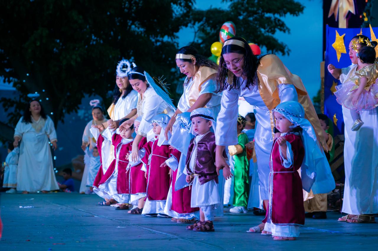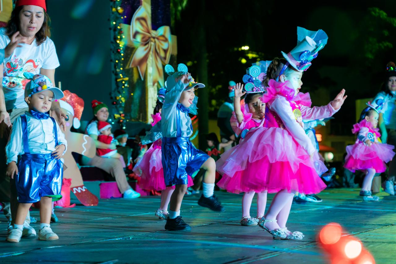 Con un escenario iluminado y decorado con motivos propios de la temporada, las y los pequeñines realizaron diversas presentaciones artísticas, luciendo coloridos disfraces navideños y demostrando sus habilidades a través del baile, guiados con dedicación por sus maestras, lo que arrancó aplausos, sonrisas y muestras de cariño del público asistente.