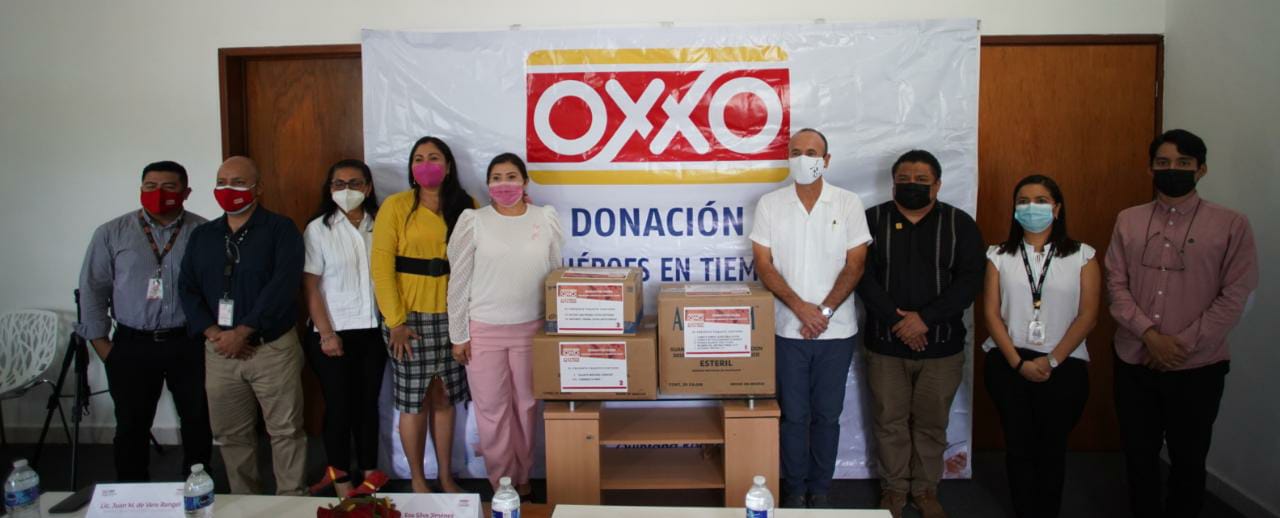 En un breve, pero significativo evento realizado en las instalaciones del Centro DIF, la presidenta honoraria de esta institución, Susana del Mar Coral Villanueva agradeció a nombre de los cozumeleños el gesto de buena fe del grupo empresarial FEMSA, OXXO la entrega del material médico para módulos de pruebas rápidas de COVID 19, que se abrirán en próximas fechas.