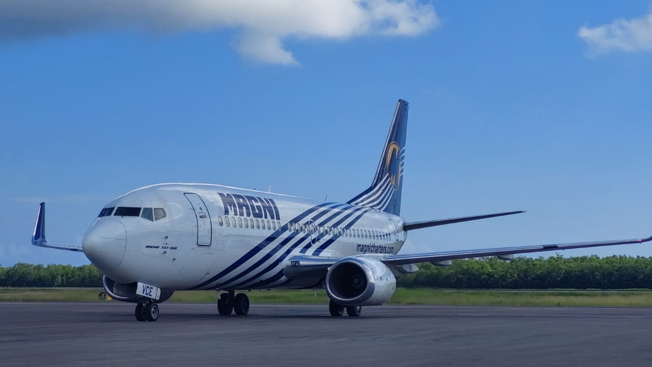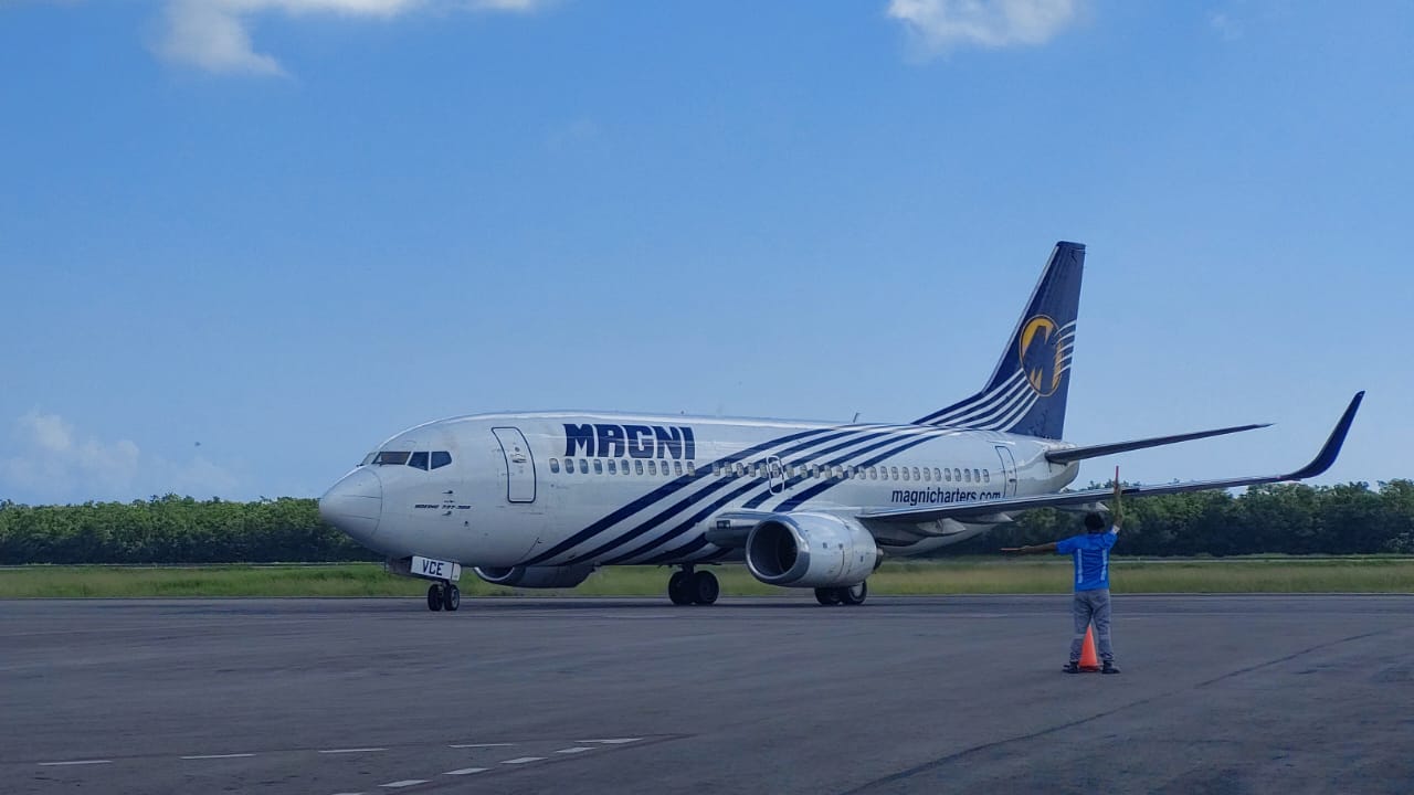 Luego de cumplir con los protocolos de llegada y salida, la aeronave de la aerolínea Magnicharters, despegó de la isla de Cozumel a las 10:20 horas con 15 pasajeros a bordo.