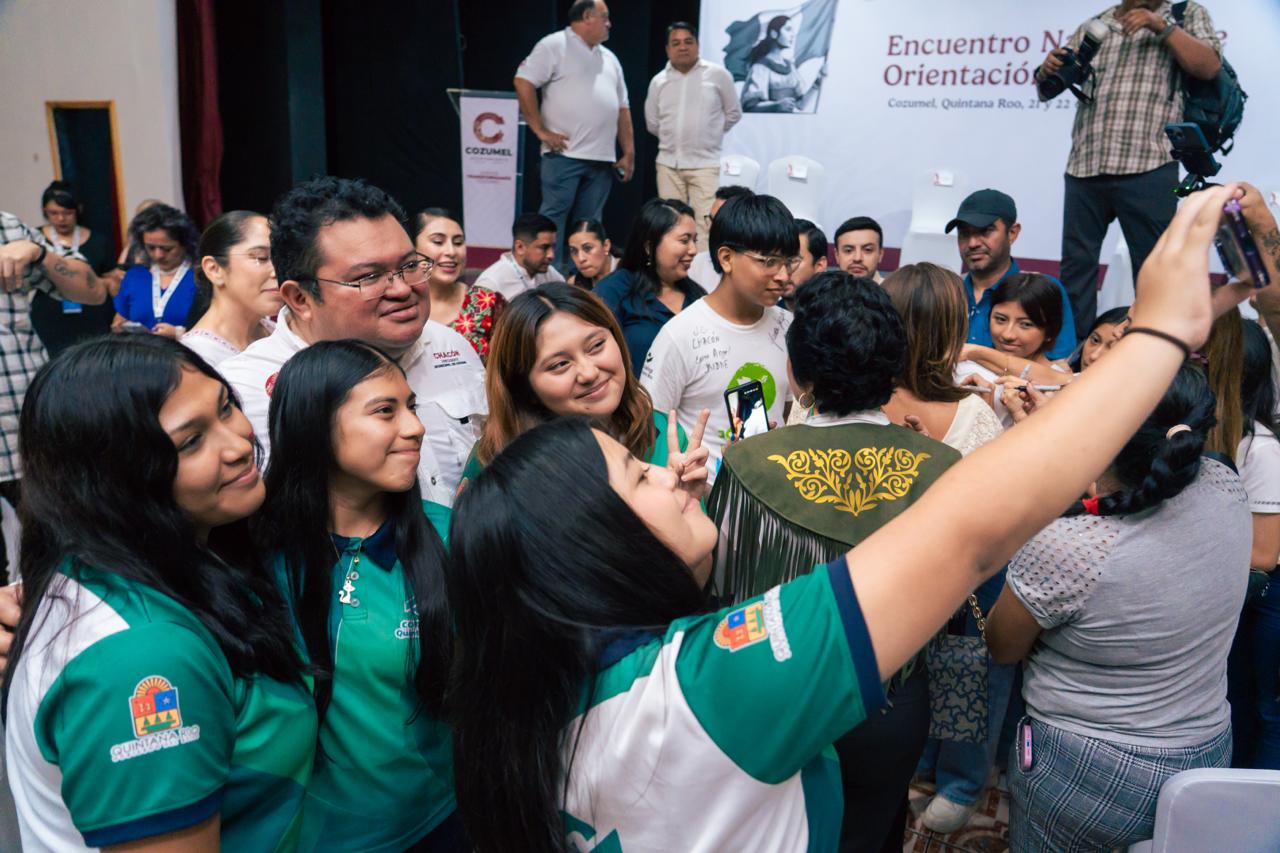En su mensaje de bienvenida, el edil agradeció a la gobernadora por su respaldo constante a la educación en Cozumel y celebró la realización de este importante encuentro que se desarrollará los días 21 y 22 de octubre, con la participación de orientadores de todo el país. “Nos llena de orgullo recibir a quienes acompañan, guían y motivan a los estudiantes a construir un futuro con justicia social e igualdad de oportunidades, tal como lo impulsa la gobernadora Mara Lezama”, expresó.