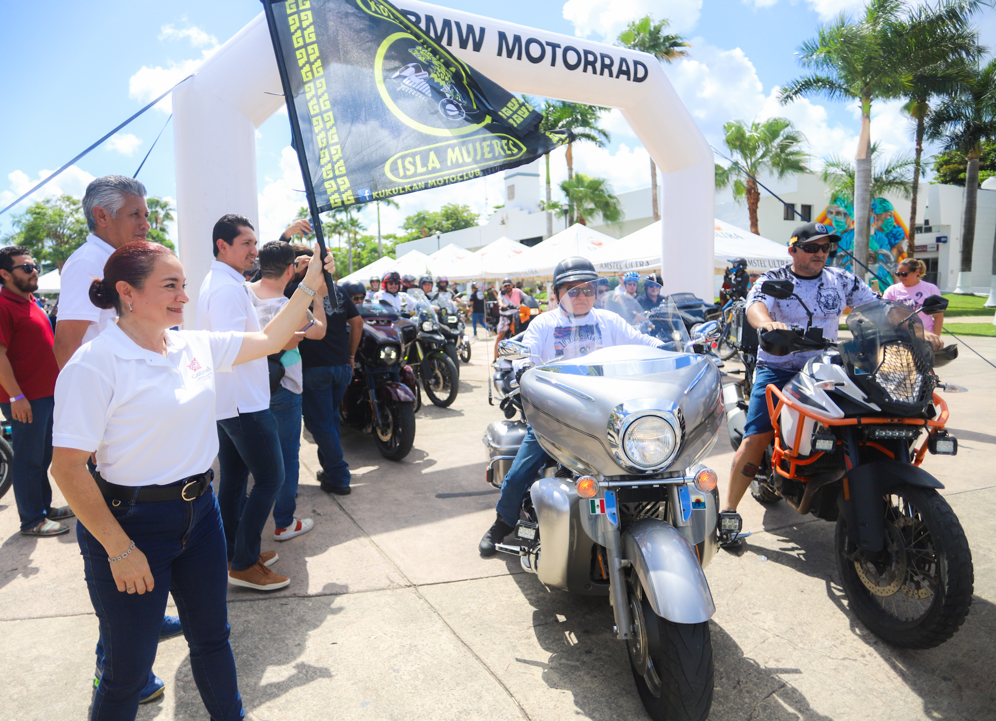 El punto de salida fue la explanada del parque Quintana Roo, donde en compañía de los organizadores de este evento pertenecientes a la agrupación “Brotherhoods”, la munícipe externó la bienvenida a los participantes, deseándoles que se diviertan, respeten los señalamientos y disposiciones que garantizan su seguridad, y sobre todo que disfruten las bellezas naturales que Cozumel tiene para ofrecerles.