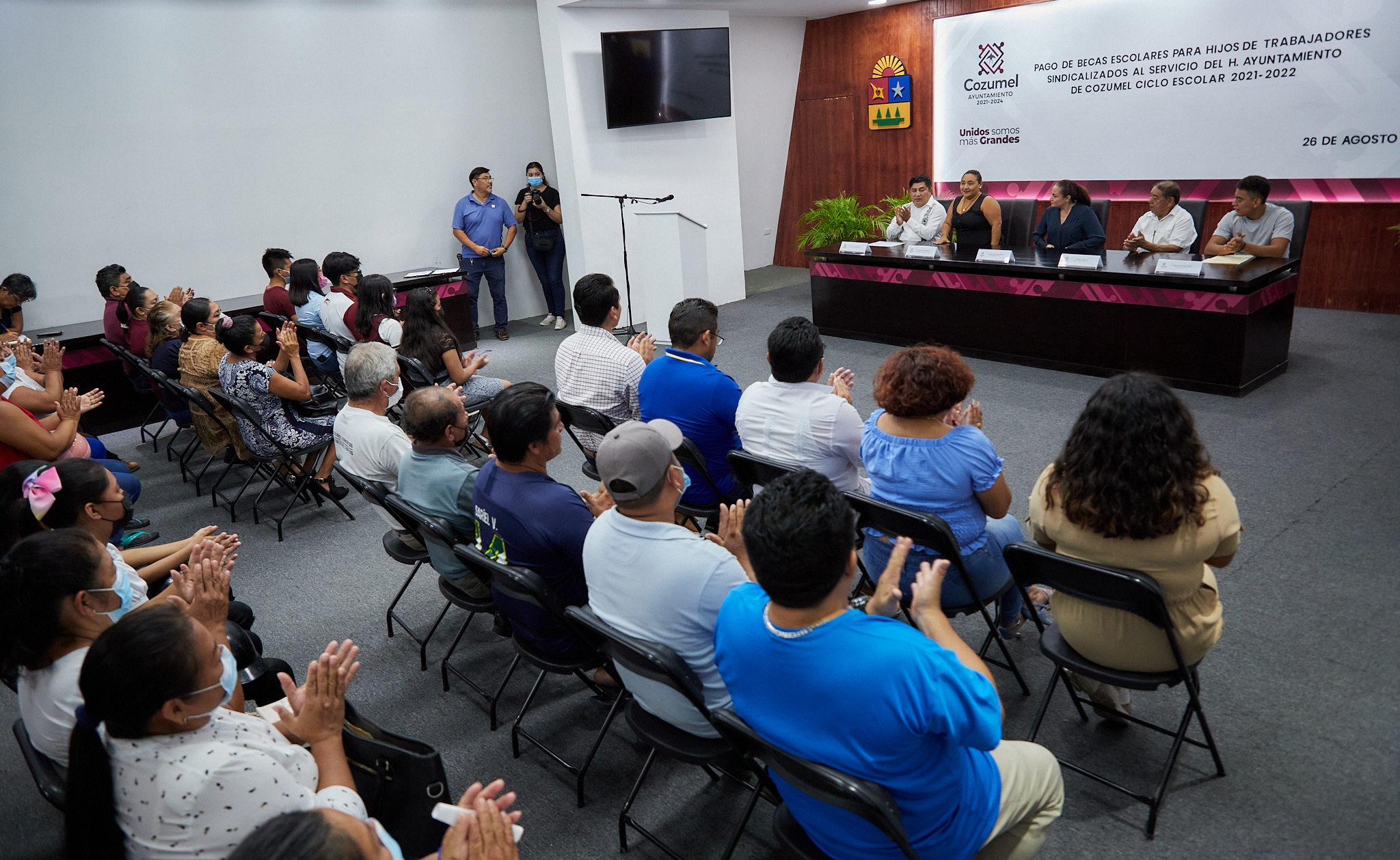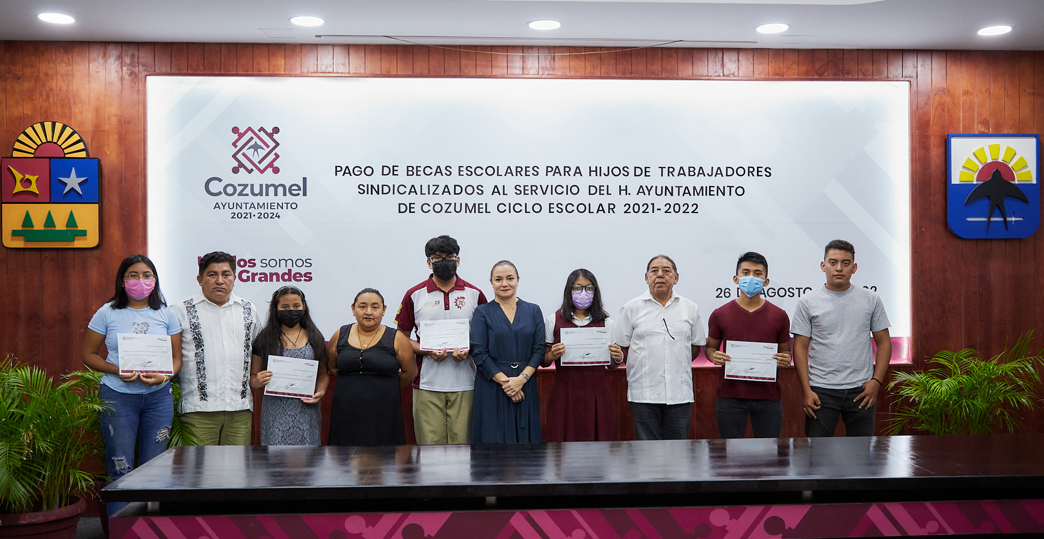 Dijo que con el pago de las becas escolares con recursos municipales se impulsa a los estudiantes a continuar preparándose y mantener un buen nivel de aprovechamiento escolar que en esta ocasión se paga lo correspondiente al primer bimestre 2021-2022 que corresponde a los meses de septiembre y octubre.