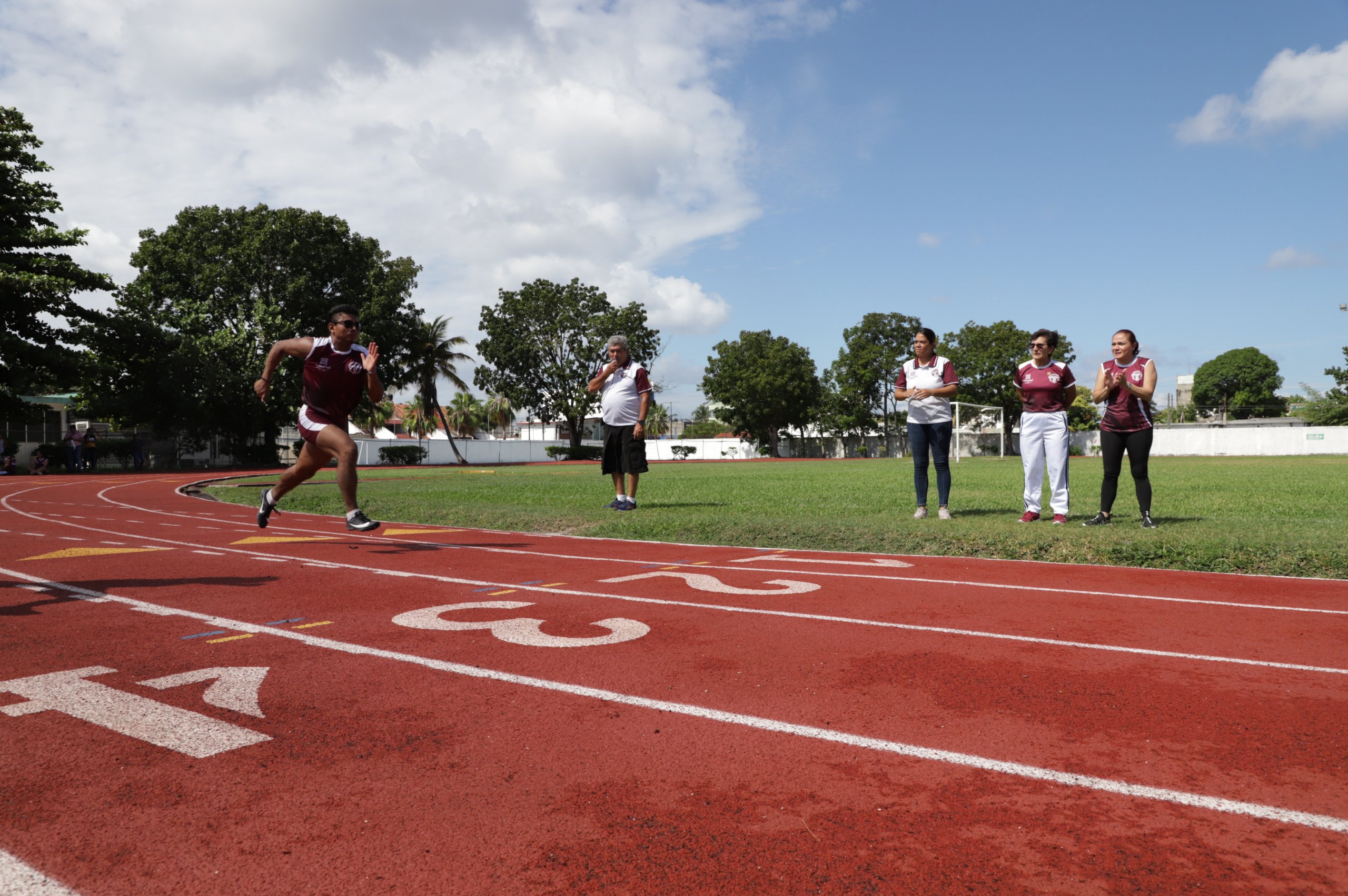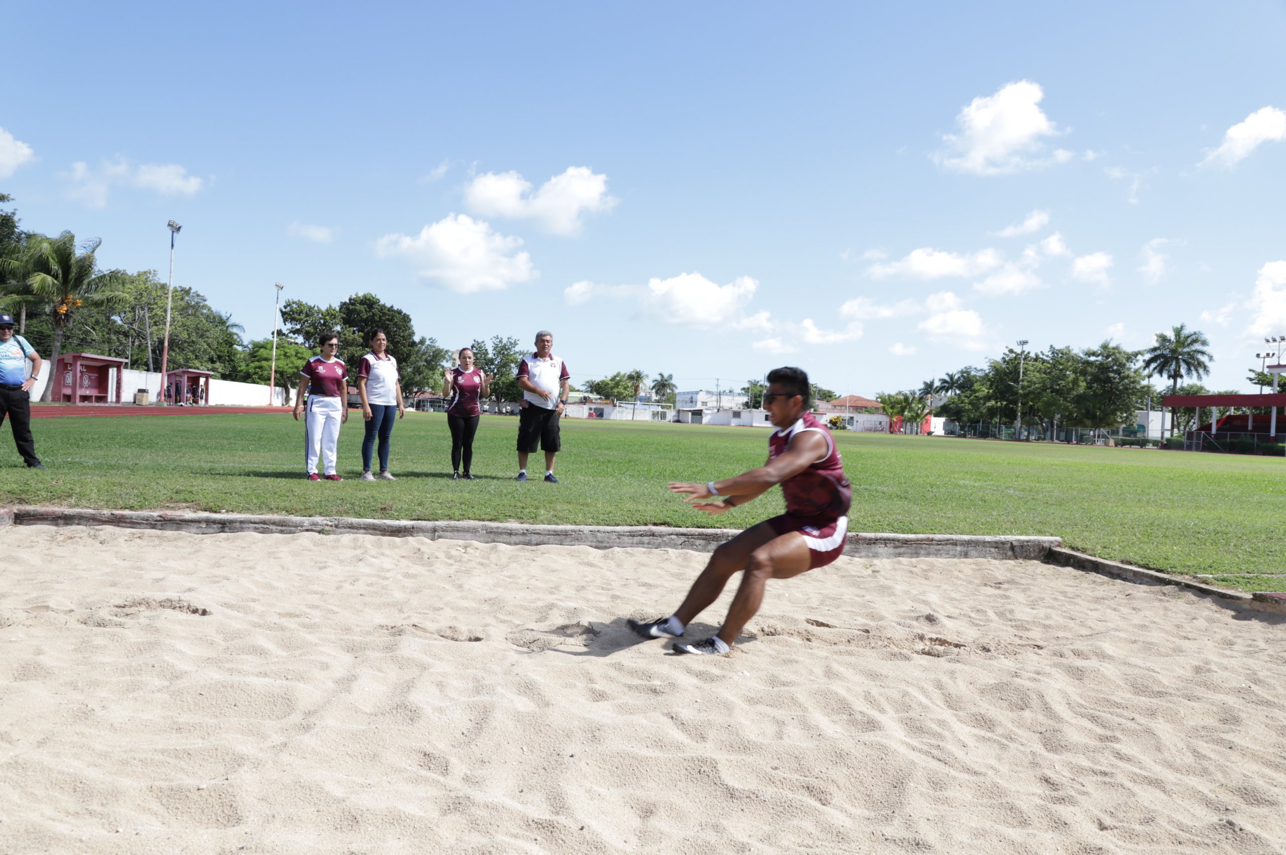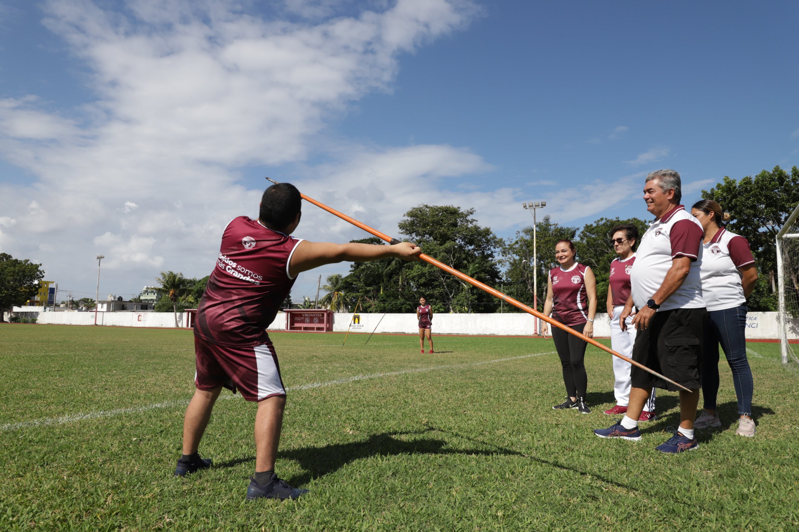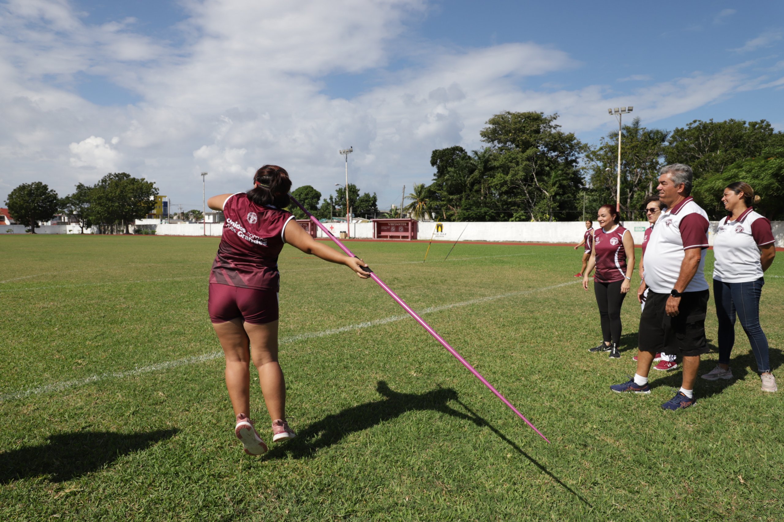 Tras la charla, la Presidenta Municipal presenció una demostración de los avances de los paratletas en lanzamiento de disco, jabalina y bala, por parte de Natalia Pérez y José Pech, así como de salto de longitud y 100 metros planos de Manuel Pacheco.