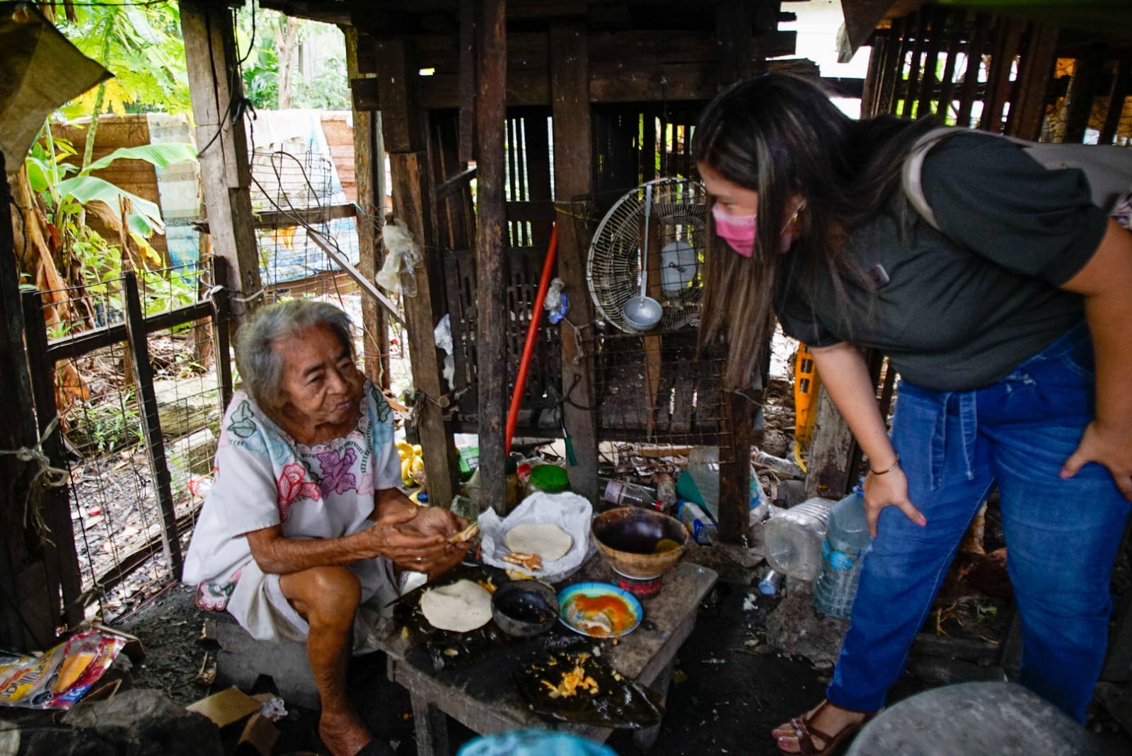 Acompañada de las coordinadoras de Asistencia Social y Voluntariado, María Guadalupe Martínez Sánchez y Lucía Payén Zepeda, recorrió el área de la vivienda y constató de las condiciones insalubres que rodea la vida de esta pareja de ancianos.