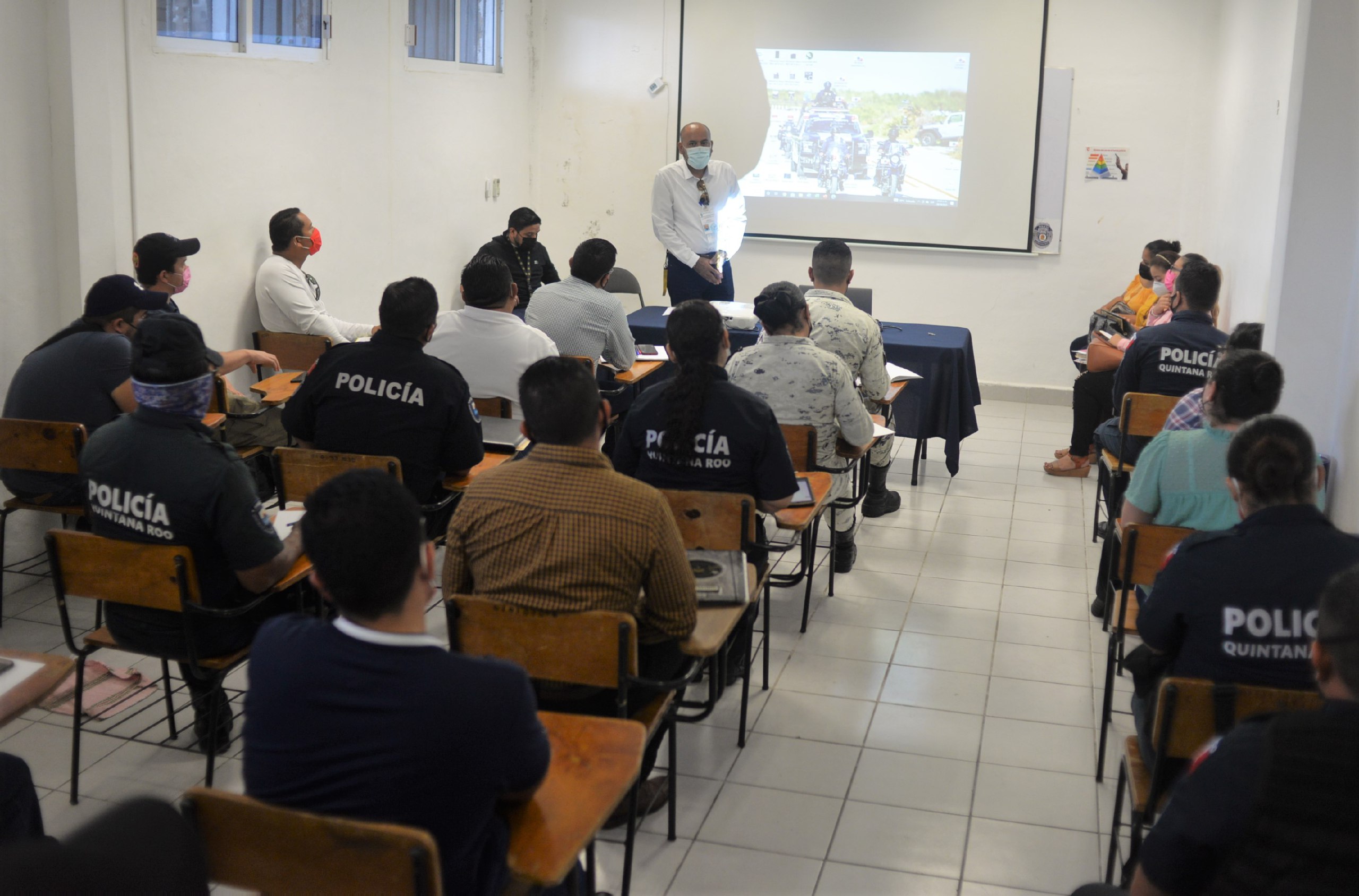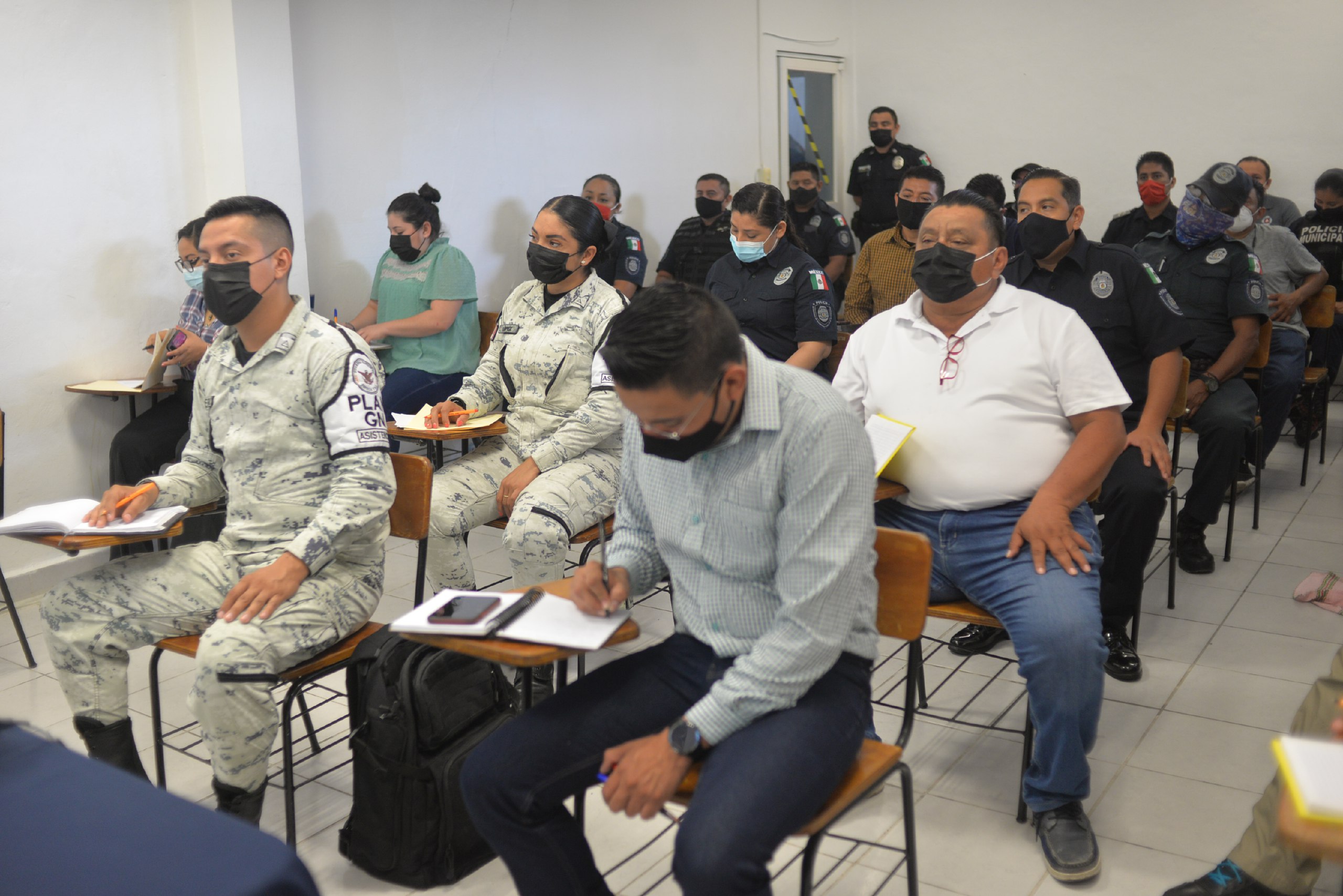 Elementos de la Policía Municipal Preventiva de Cozumel y de la Guardia Nacional adscritos a la isla participaron en el curso de actualización por parte de la Fiscalía General del Estado con la finalidad de homologar criterios en los informes policiales, cadenas de custodia, aseguramiento de bares y expendios clandestinos.