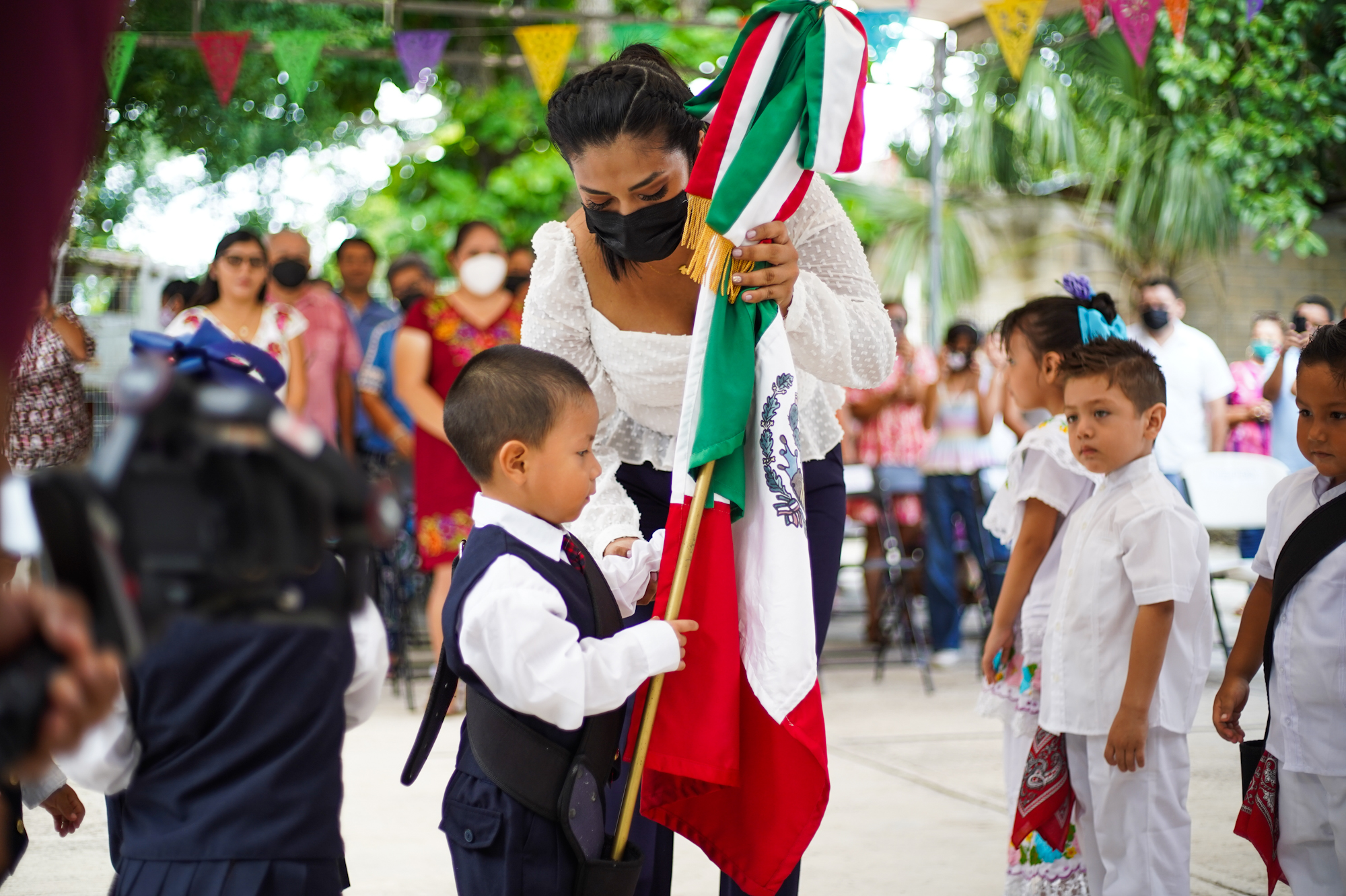Durante este evento, que resultó muy emotivo para los presentes, los pequeños realizaron los honores al Lábaro Patrio, entonaron los himnos a Quintana Roo y Nacional Mexicano, efectuaron el cambio de escolta y para concluir el pequeño Sebastián Olivares, recitó el juramento a la bandera.