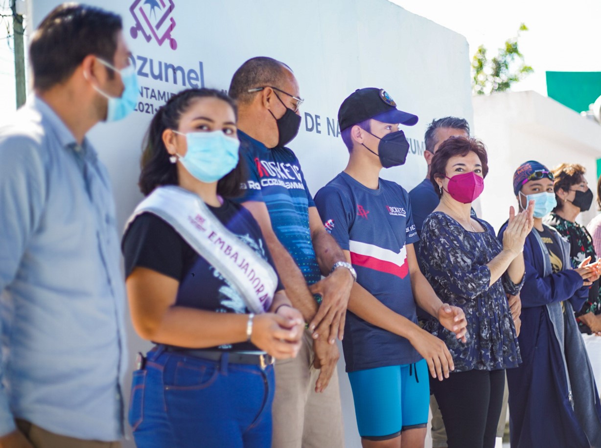 La Presidenta Municipal Juanita Alonso Marrufo encabezó la inauguración oficial de la VII Copa de Natación Cozumel, organizada por el Club Rockets en la que participaron alrededor de 100 competidores de Chetumal, Cancún, Playa del Carmen y de la Isla de las Golondrinas, en la Alberca semi olímpica Municipal, donde premió a los ganadores de la competencia de 100 metros combinado de las ramas “femenil” y “varonil”.