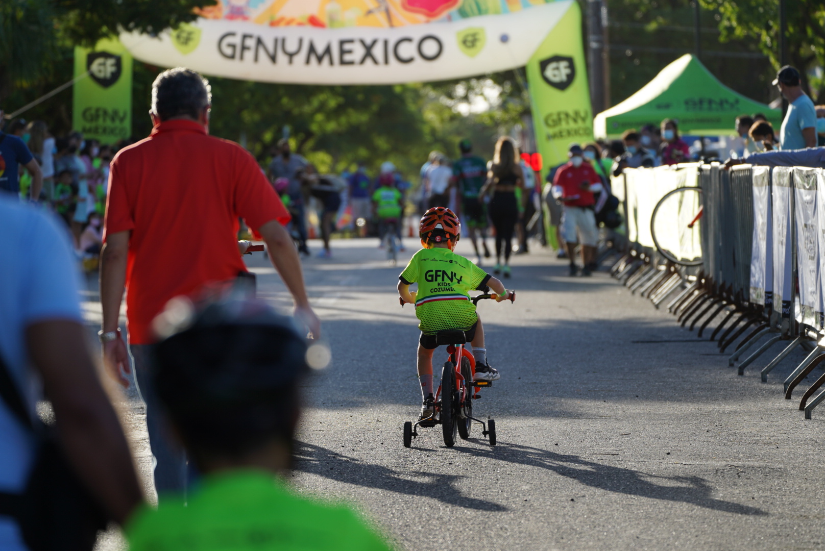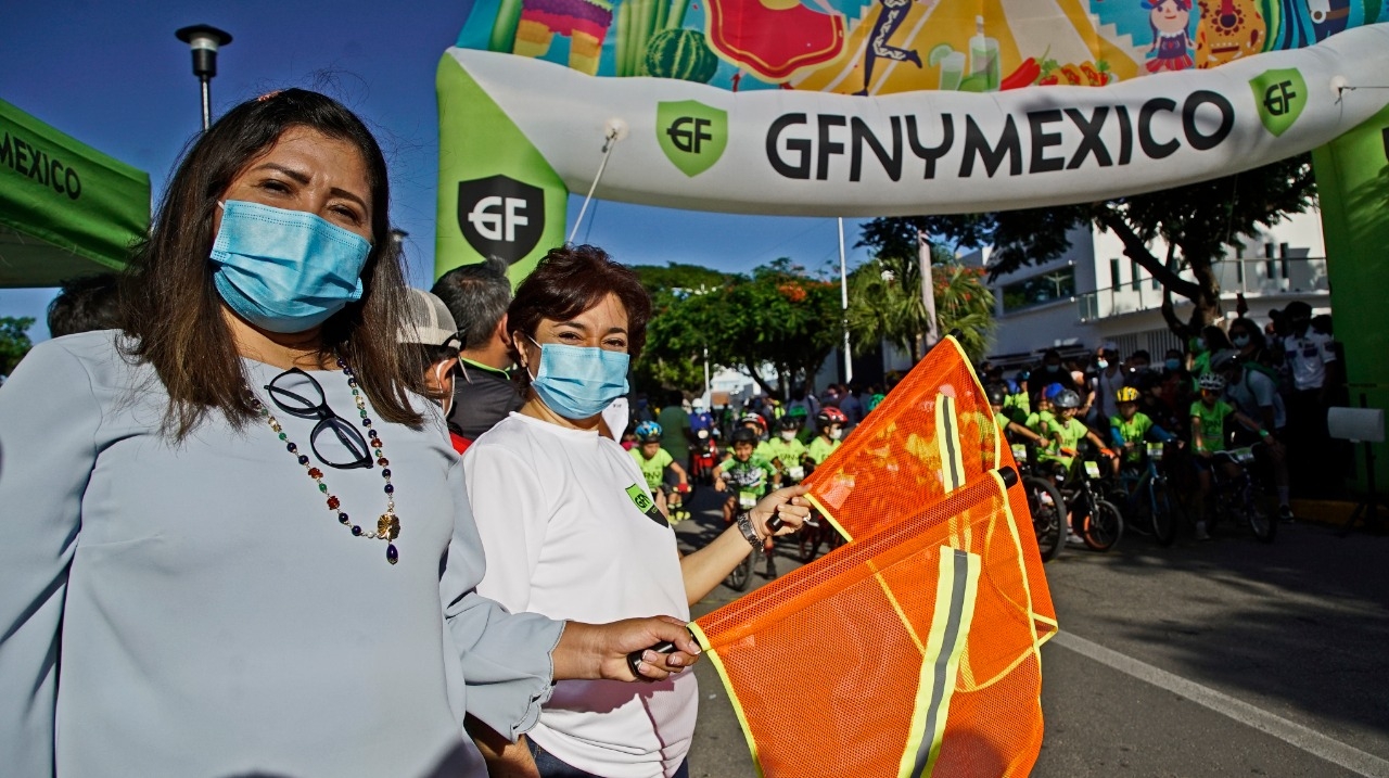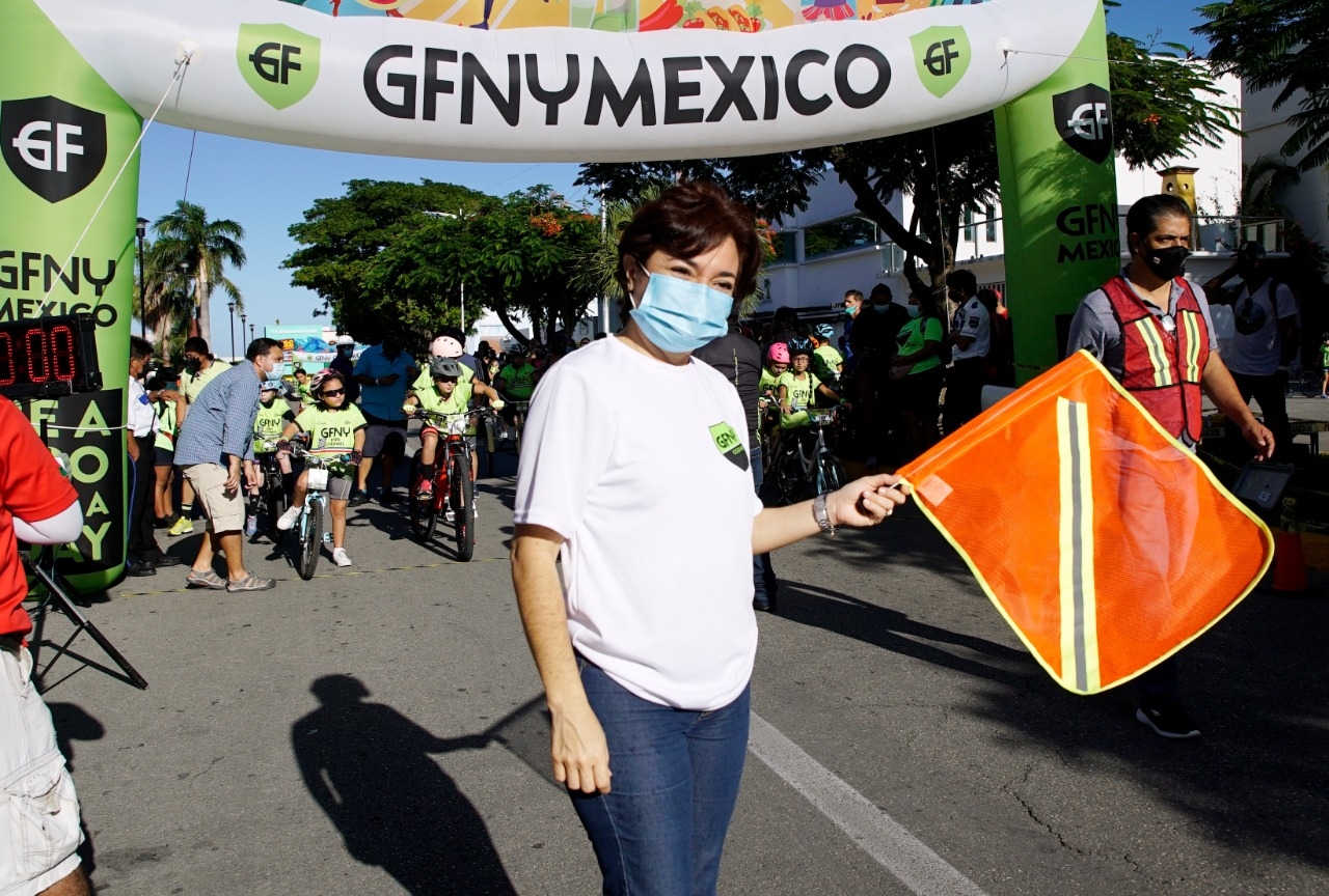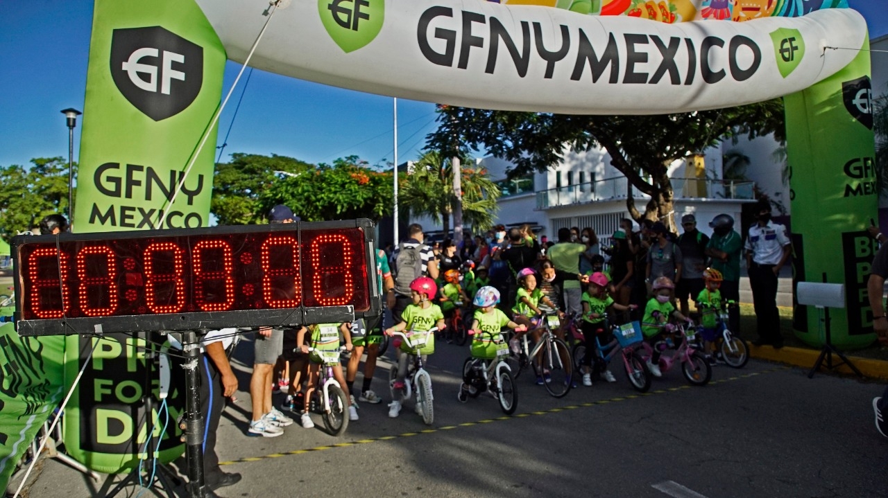 Con un ambiente de fiesta y sana convivencia familiar, inició este sábado el primer día del Gran Fondo New York Cozumel 2021 con su versión “GFNY Kids”, al que asistió la presidenta municipal, Juanita Alonso Marrufo, para dar el banderazo de salida de algunas categorías de esta competencia en la que participaron alrededor de 150 niñas y niños de 3 a 14 años de edad.