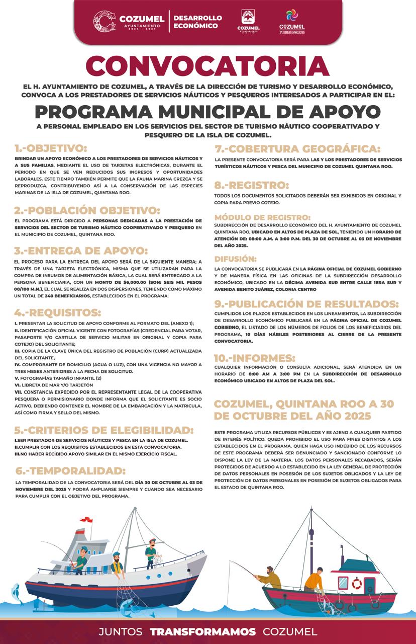 PROGRAMA MUNICIPAL DE APOYO A PERSONAL EMPLEADO EN LOS SERVICIOS DEL SECTOR DE TURISMO NAUTICO COOPERATIVADO Y PESQUERO DE LA ISLA DE COZUMEL.