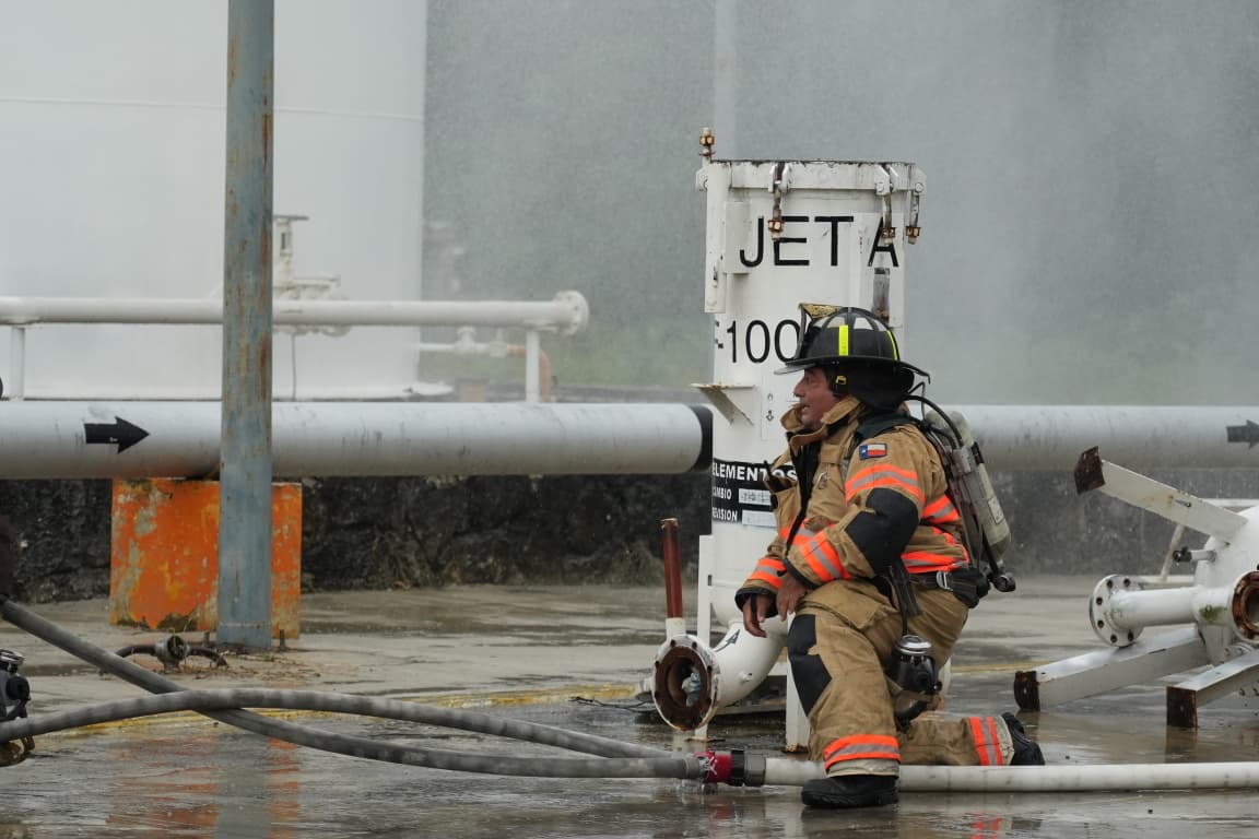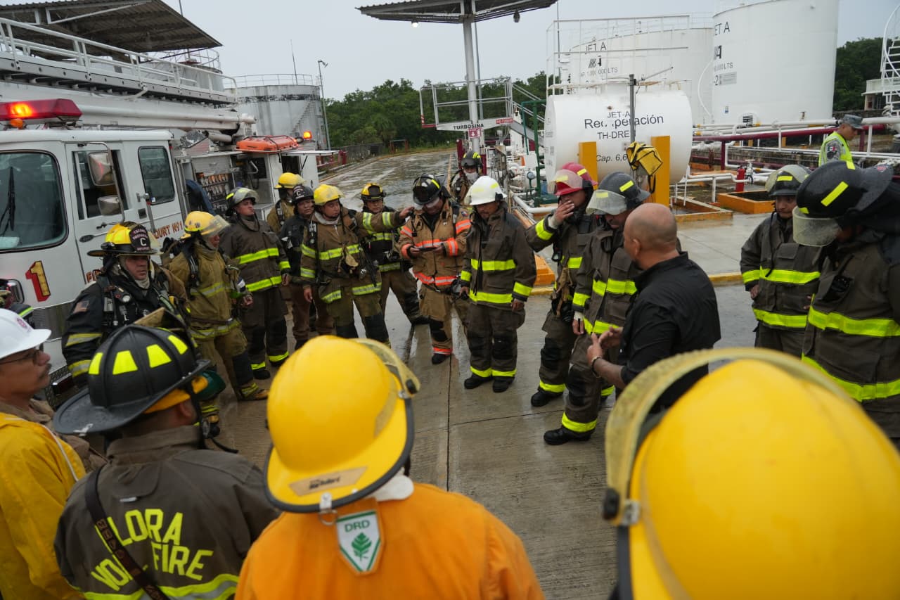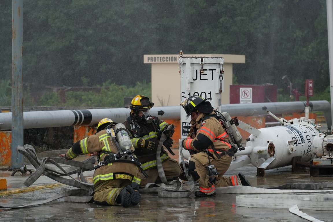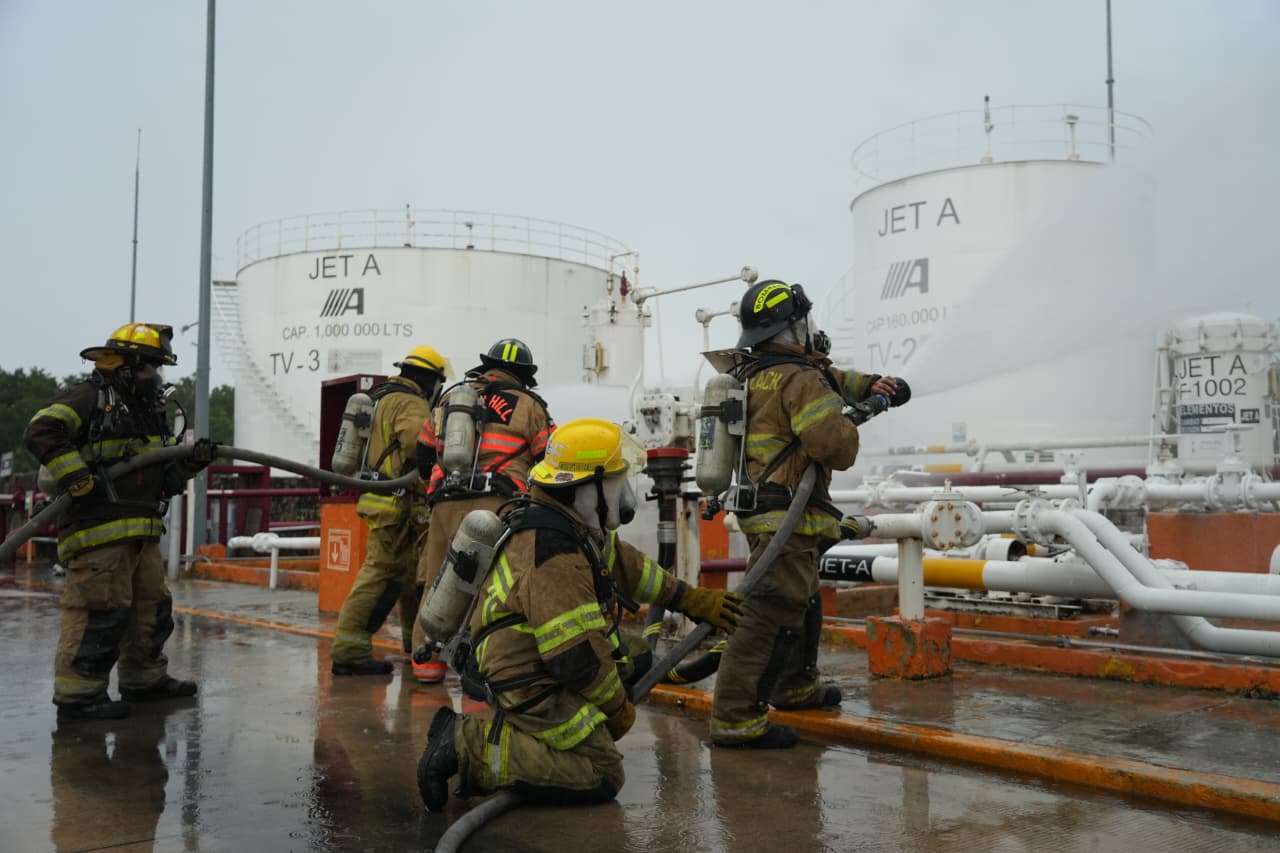 A las 10:44 horas, el simulacro concluyó exitosamente, logrando contener y sofocar el supuesto incendio en la planta que almacena un millón 200 mil litros de gasavión y turbosina, mediante la aplicación de 150 mil litros de líquido con componente triple F (espumógeno), evitando así la propagación del fuego.