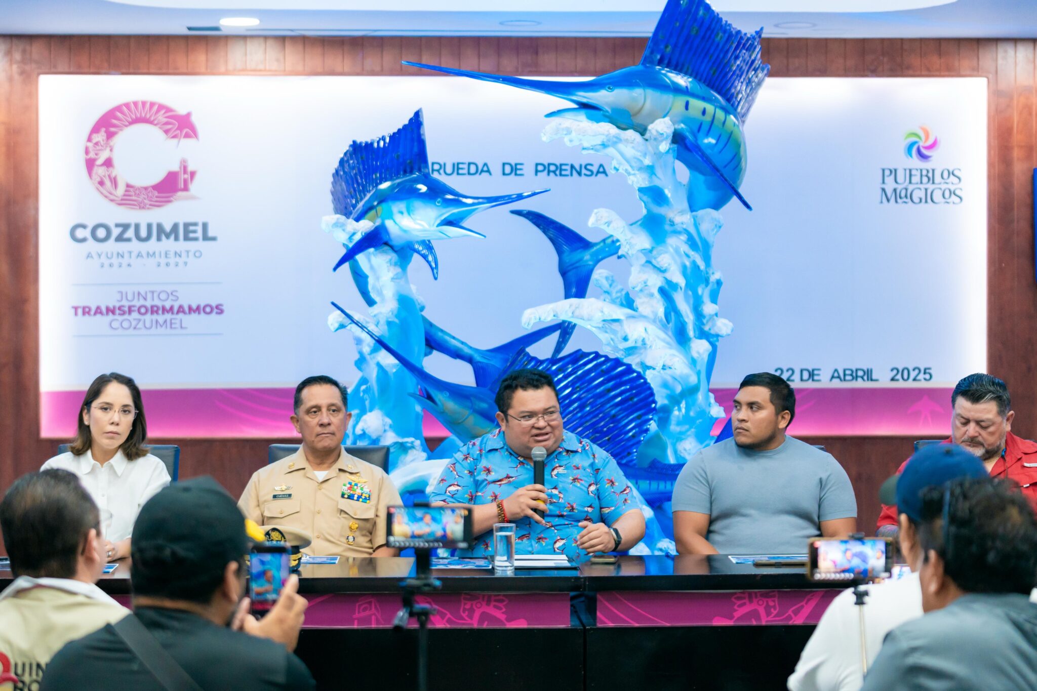 En rueda de prensa encabezada por el presidente municipal, José Luis Chacón Méndez, fue presentada la edición número 54 del tradicional “Rodeo de Lanchas Mexicanas Cozumel 2025”, que se llevará a cabo del 16 al 18 de mayo, un evento que promete consolidarse como uno de los más relevantes del sureste mexicano en materia de pesca deportiva con la finalidad de captar más turismo.