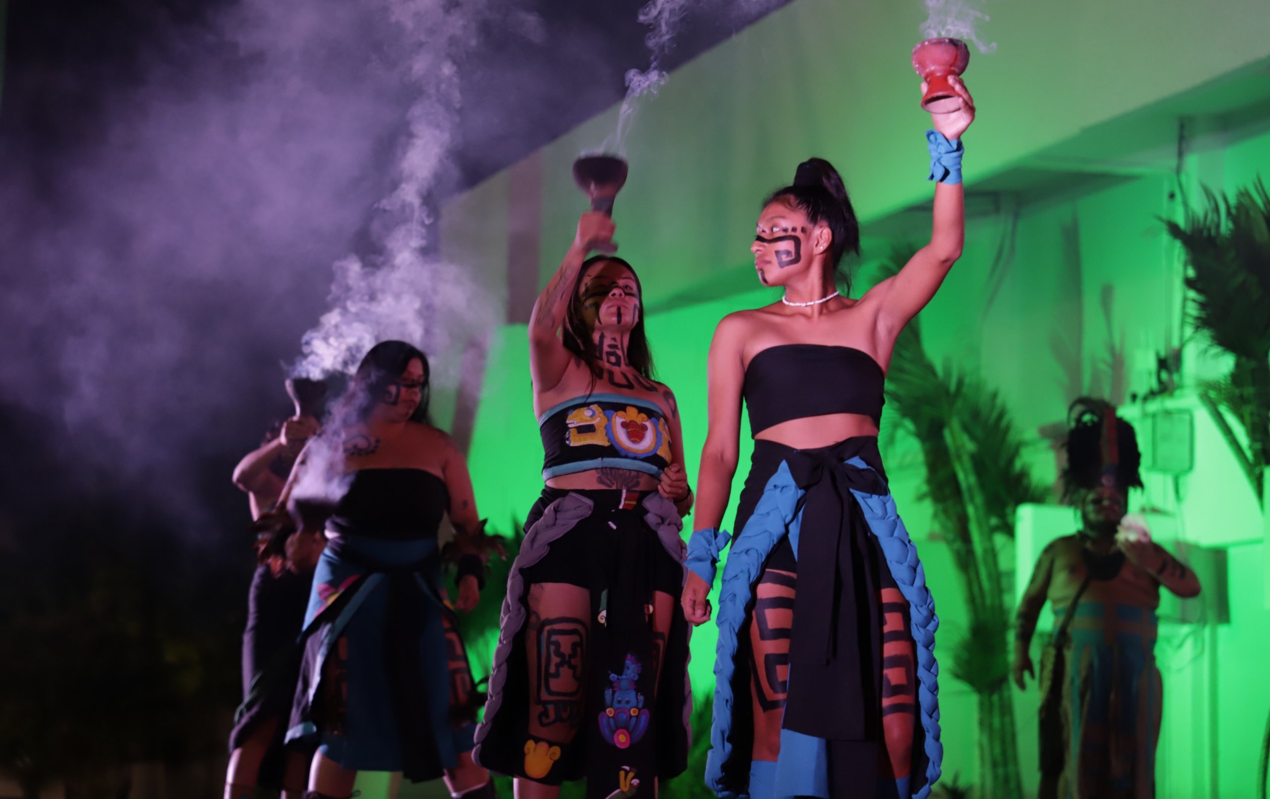 La velada fue abierta por el grupo prehispánico del Pueblo del Maíz, quienes presentaron músicas y danzas ancestrales en el escenario alterno del parque Quintana Roo, asimismo, hizo lo propio el grupo folklórico Aquetzaly con un cuadro dancístico dedicado al vecino estado de Yucatán, con los típicos bailes de jarana, en tanto que el ballet Raíces Mestizas exhibió los colores, ritmos y bailes del estado de Veracruz.