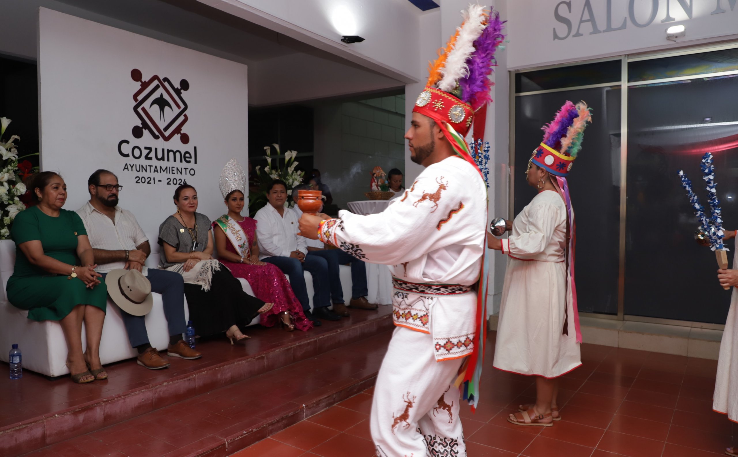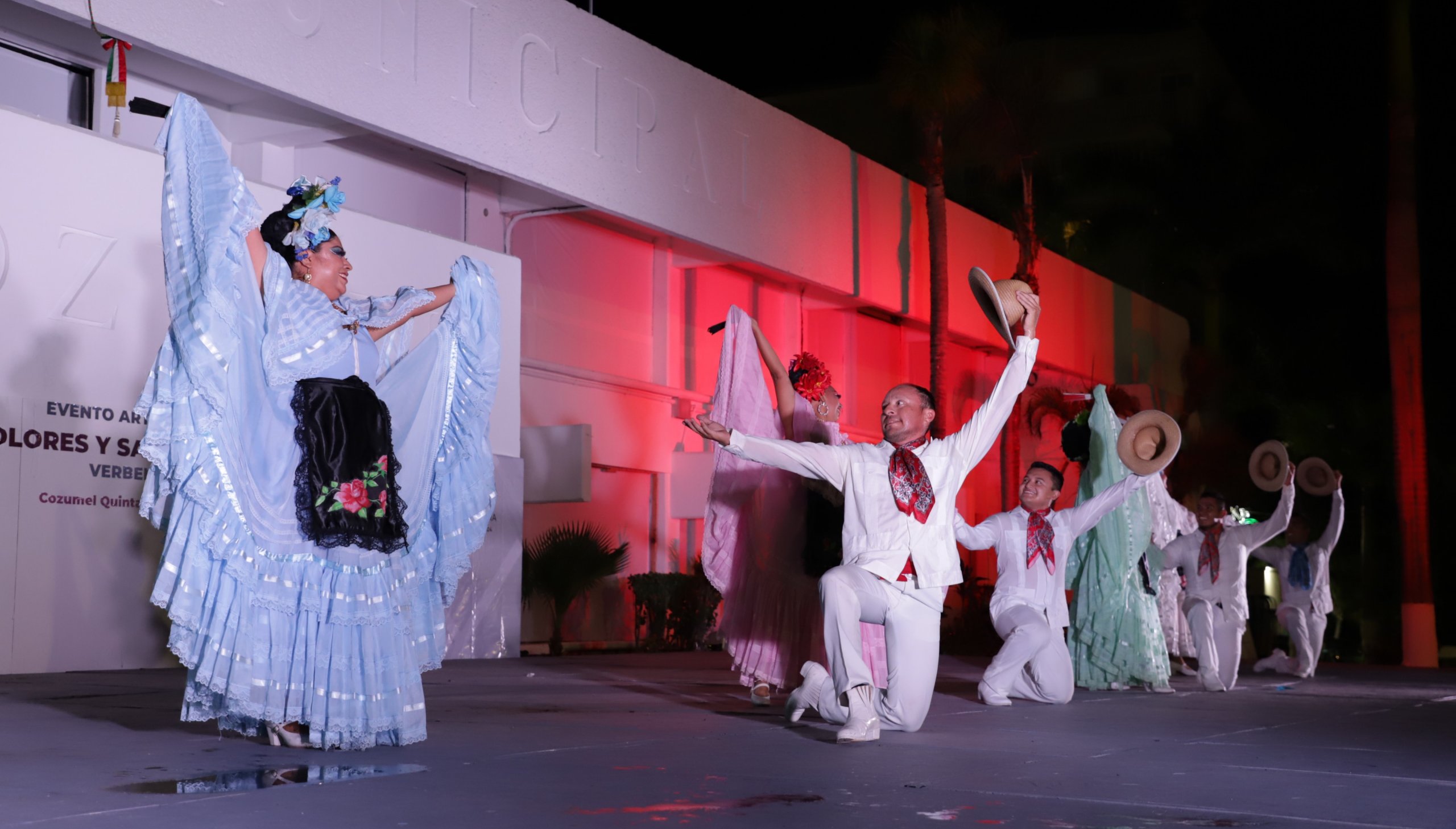 Del mismo modo el grupo dancístico de la subdirección de Cultura “Plaza del Sol” exhibió los bailes costumbristas de nuestro estado de Quintana Roo, mientras que, a causa del torrencial aguacero, se presentó en el interior del palacio municipal, frente al salón Municipios de Quintana Roo, el grupo tapatío “Taiyary” quienes compartieron con los cozumeleños la alegría y elegancia del folklore jalisciense, siendo ovacionados por los presentes.